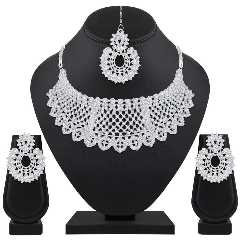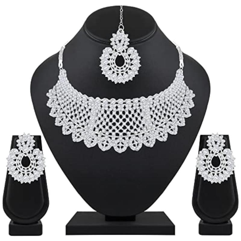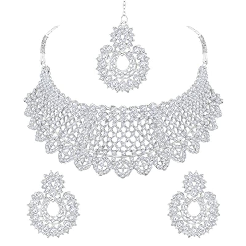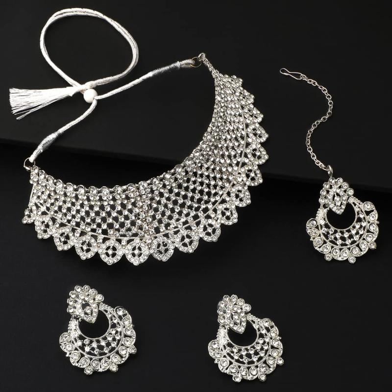 Elegant choker necklace set with diamond studded design, perfect for traditional occasions.