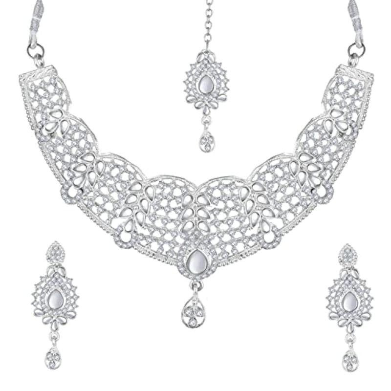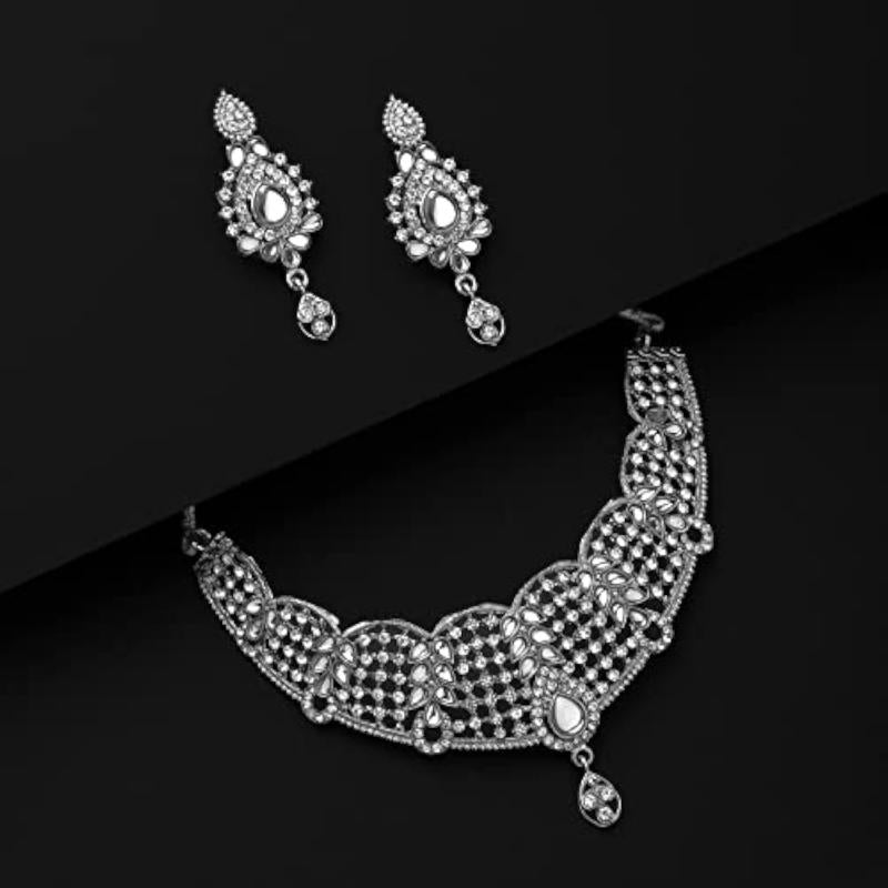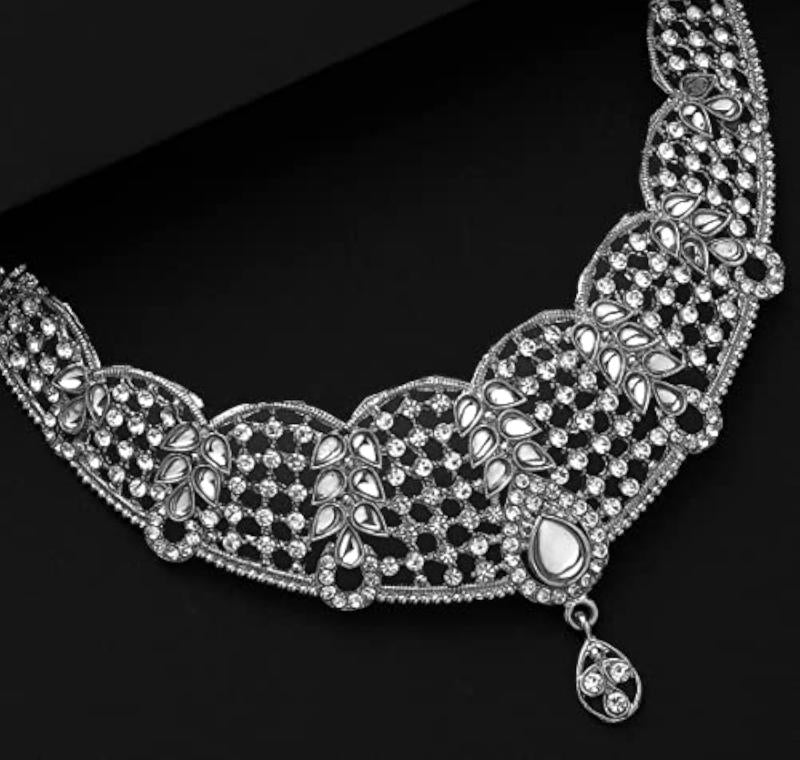 Elegantly designed choker necklace set with diamond studs. Perfect for traditional occasions.