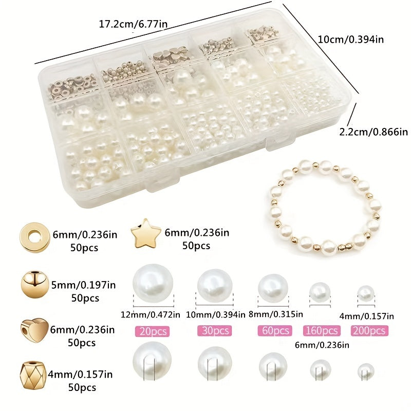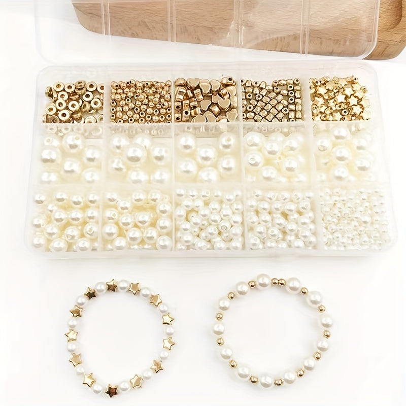 Create beautiful homemade bracelets and necklaces with this set of 15 boxes containing ABS plastic pearl round beads and CCB metal loose beads. Perfect gift for children and DIY enthusiasts.
