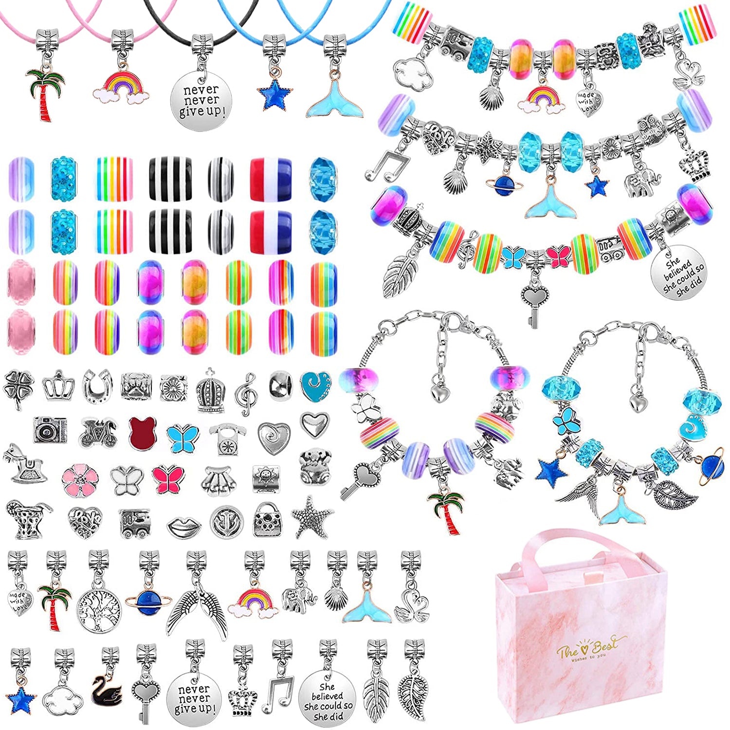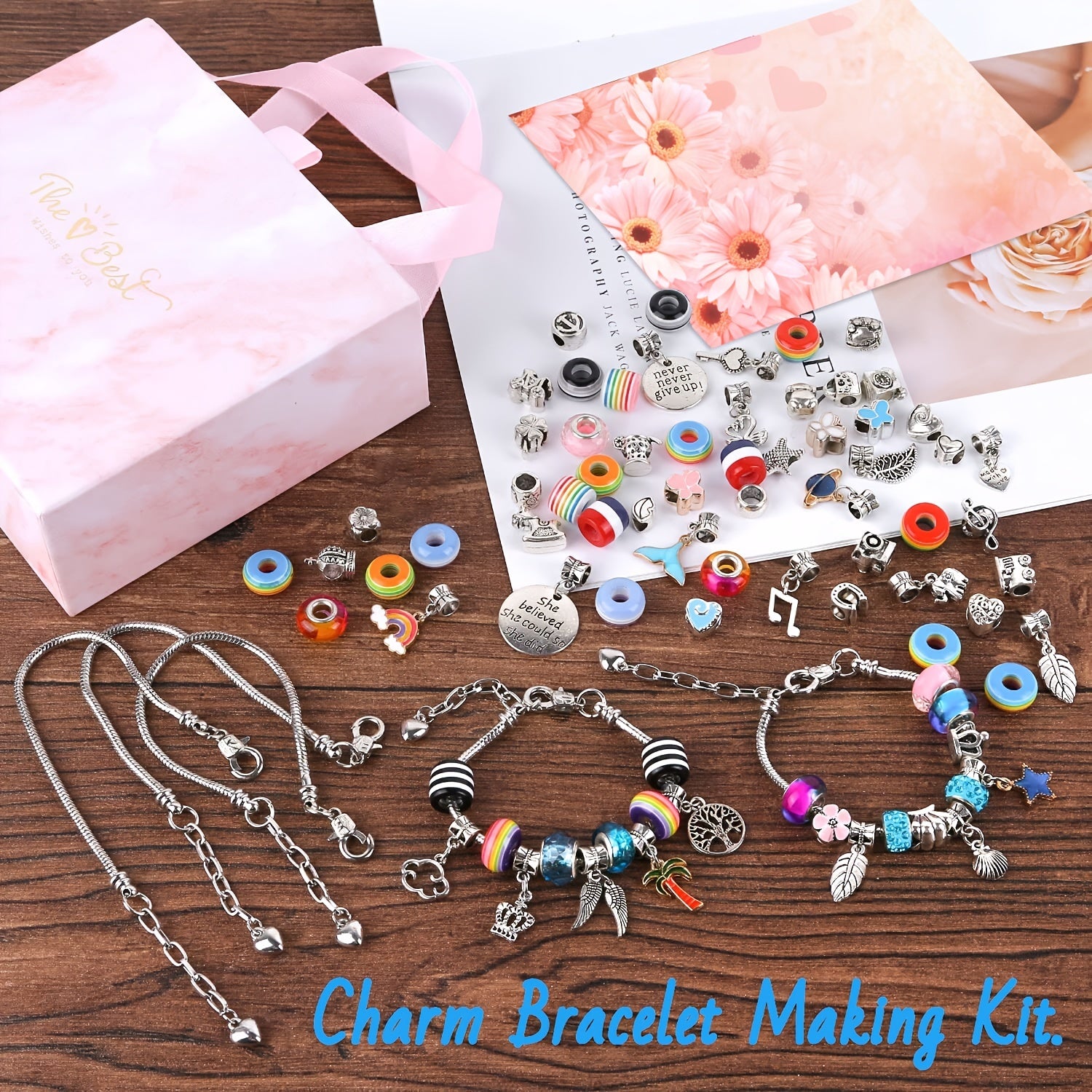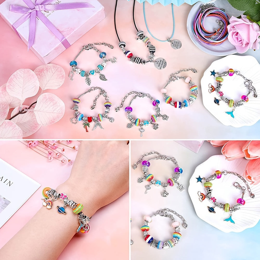 Get creative with this 90pcs bracelet making kit that includes beads, pendants, charms, bracelets, and necklace strings. Perfect for crafting and making unique accessories.