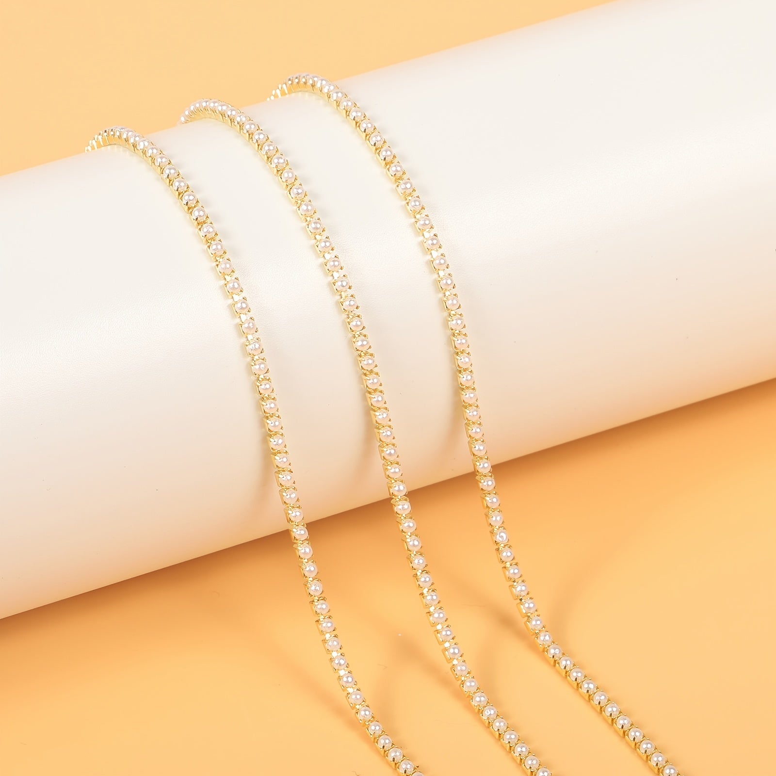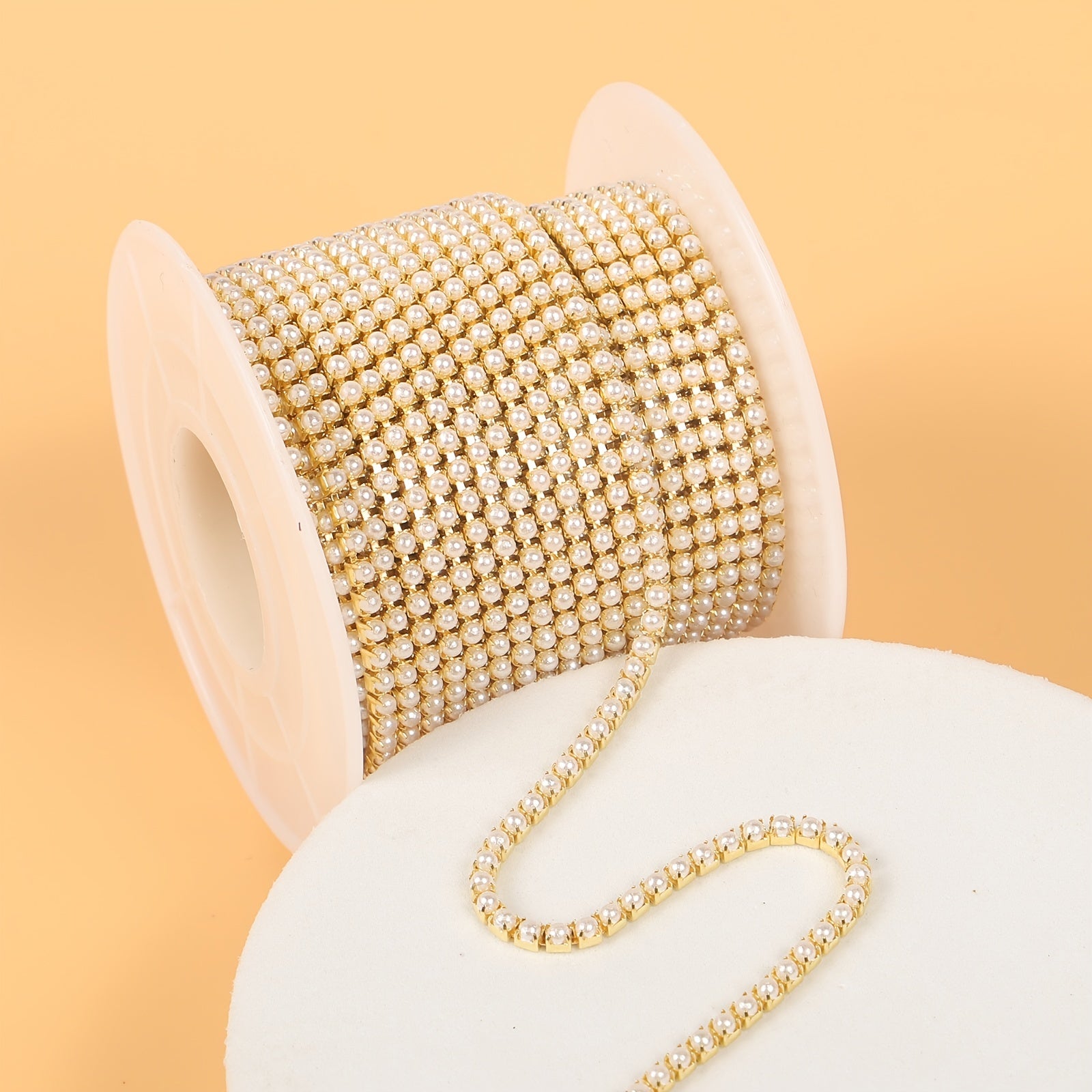 Create stunning nail art, shoe decorations, water cup embellishments, mobile phone shell designs, and more with this versatile golden pearl chain.