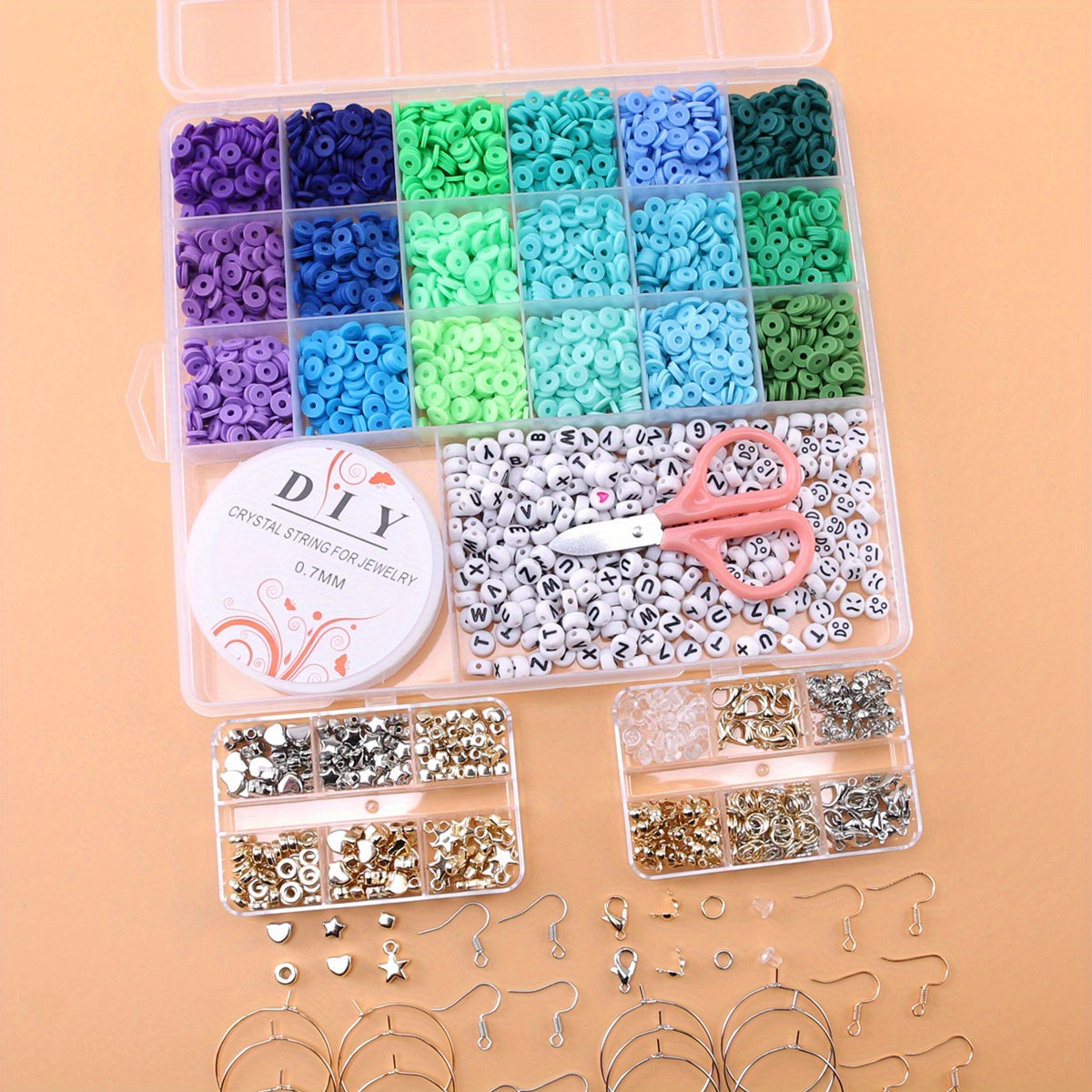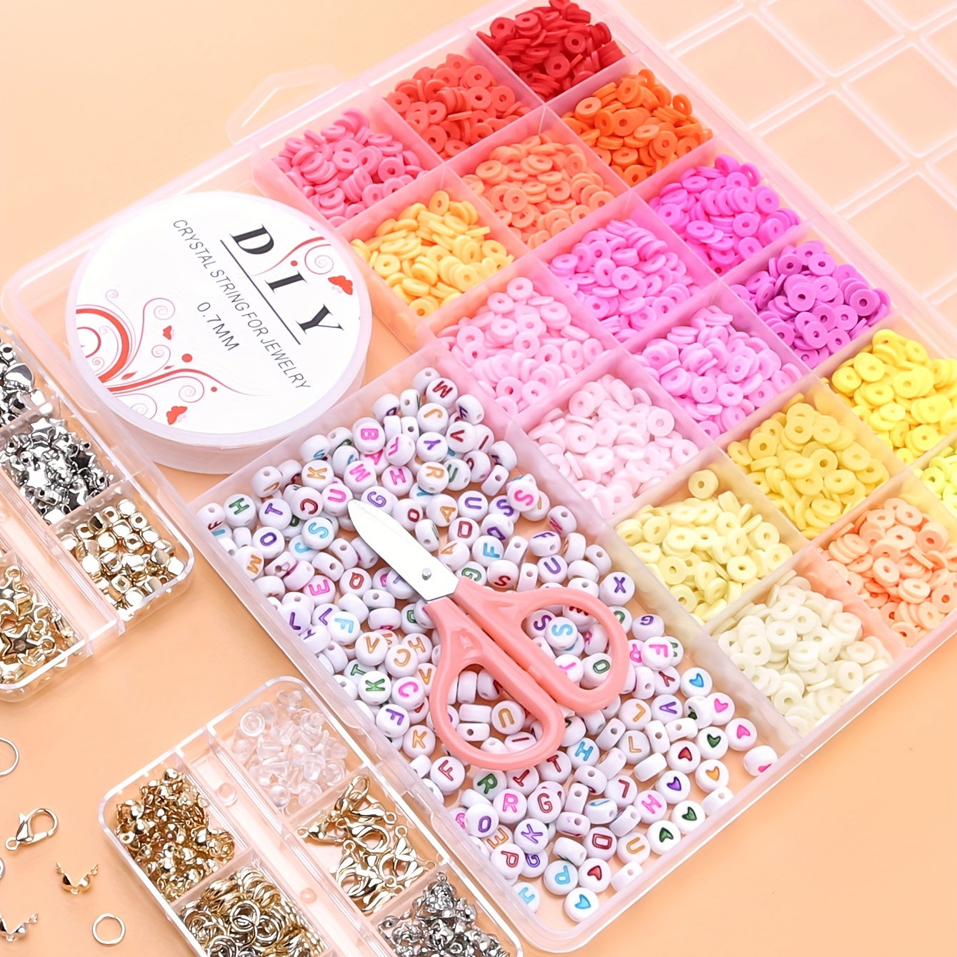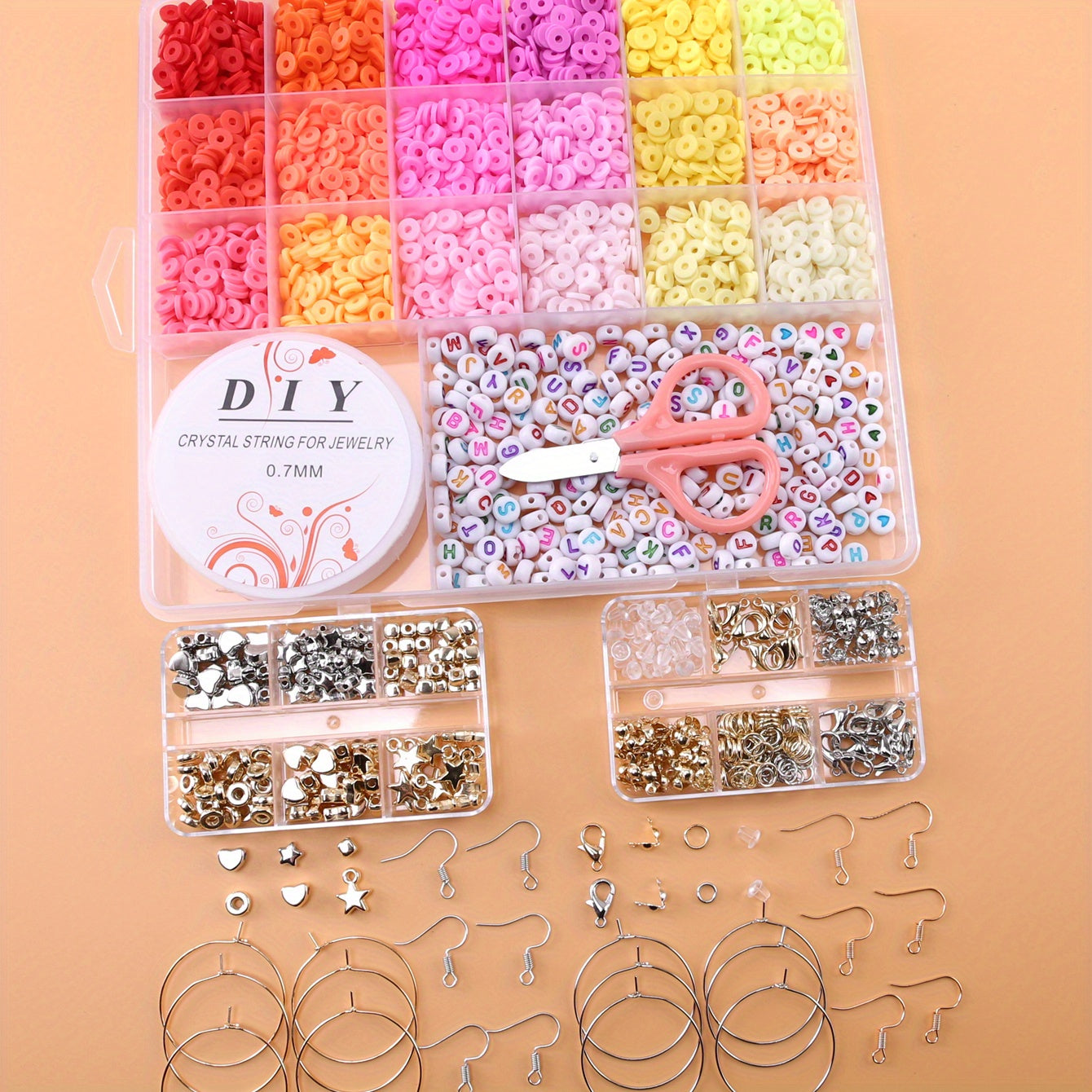 Create beautiful jewelry with this DIY kit that includes 18 soft pottery beads, 15m of elastic crystal thread, 200 letter beads. Perfect for crafting unique accessories.