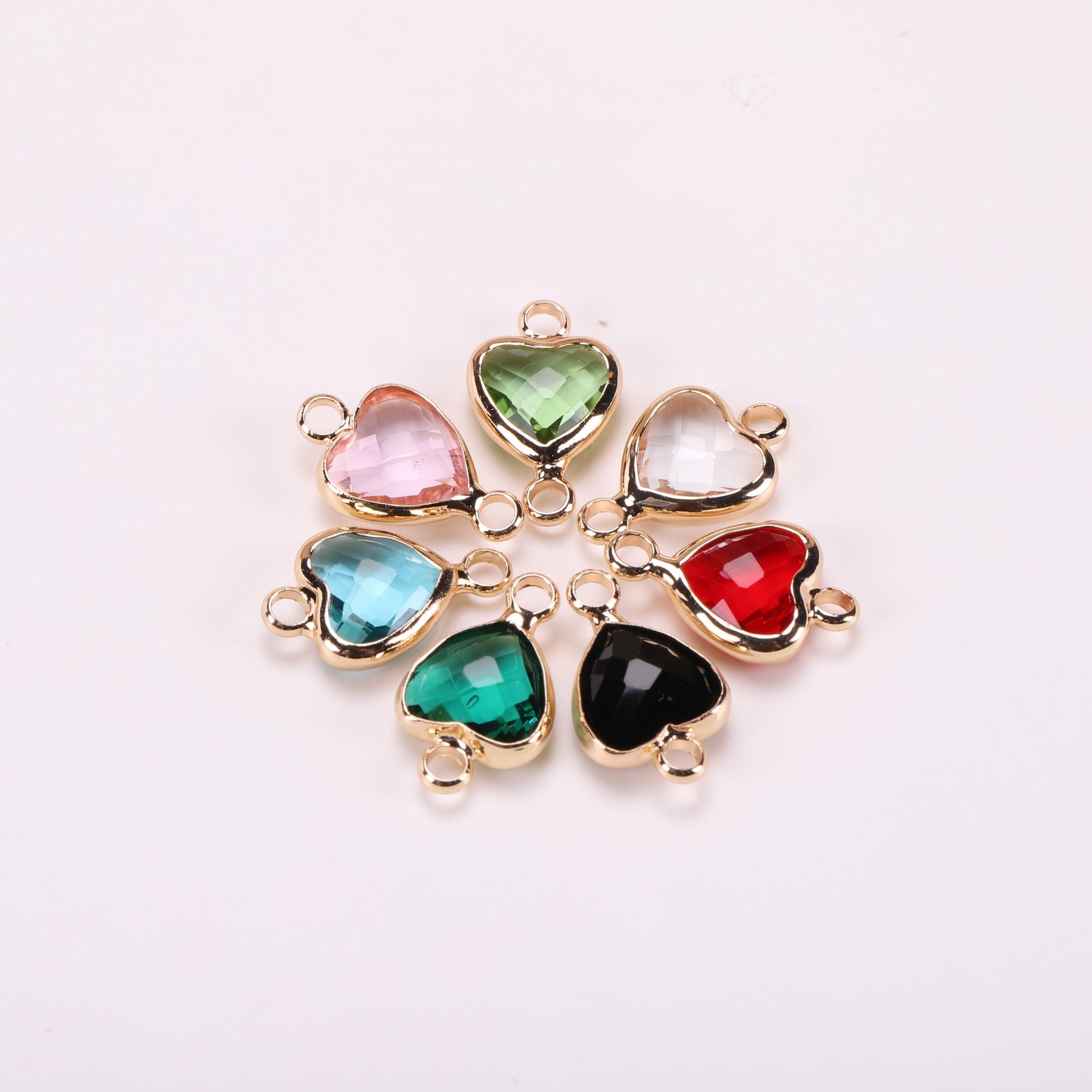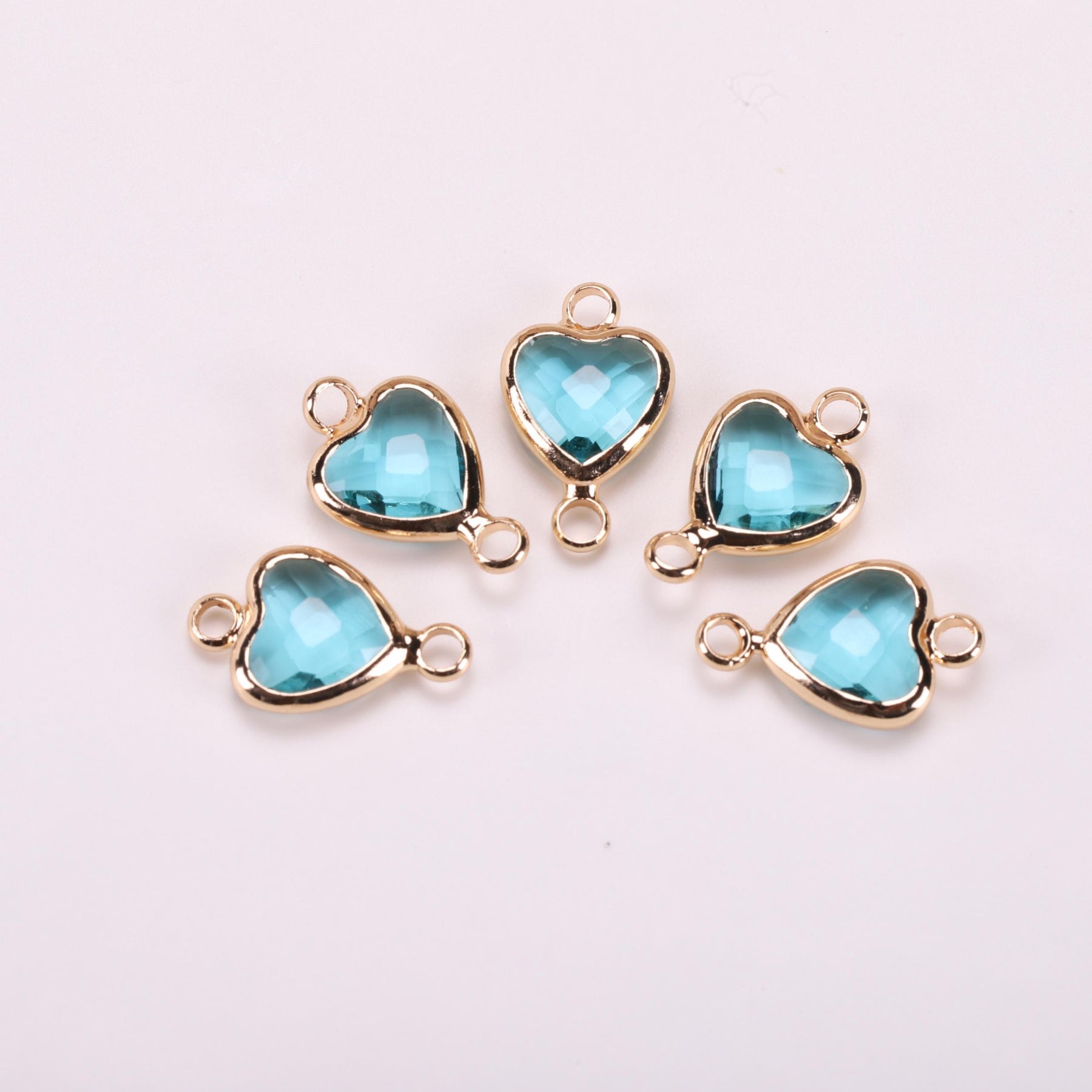 Create stunning jewelry pieces with this classic 5pc set featuring copper edge crystal heart pendants. Perfect for making your own unique earrings and necklaces.