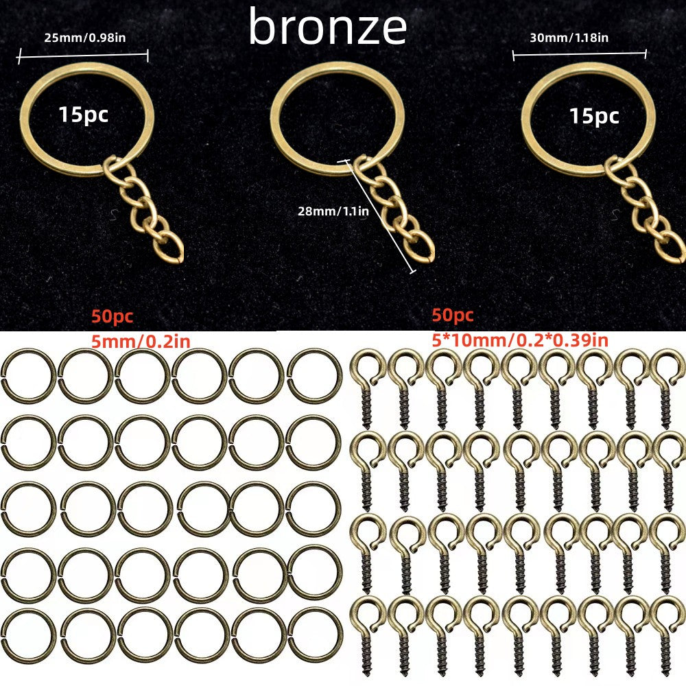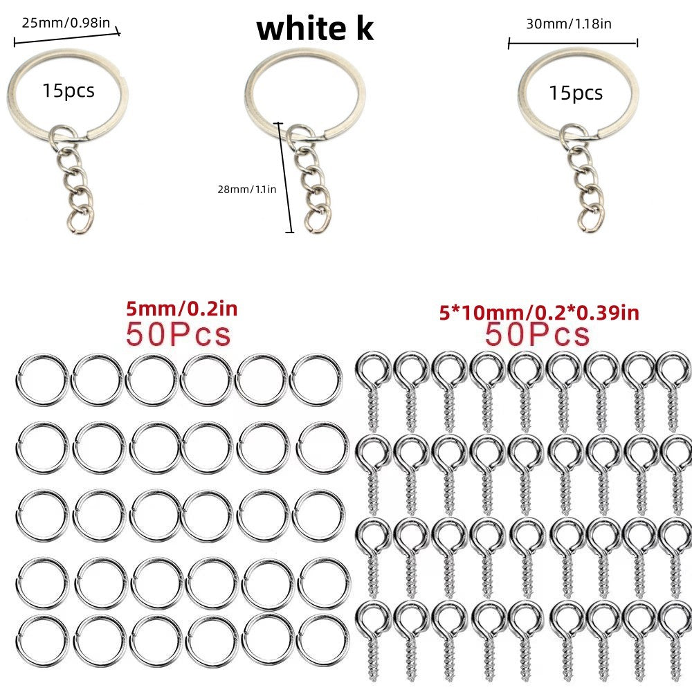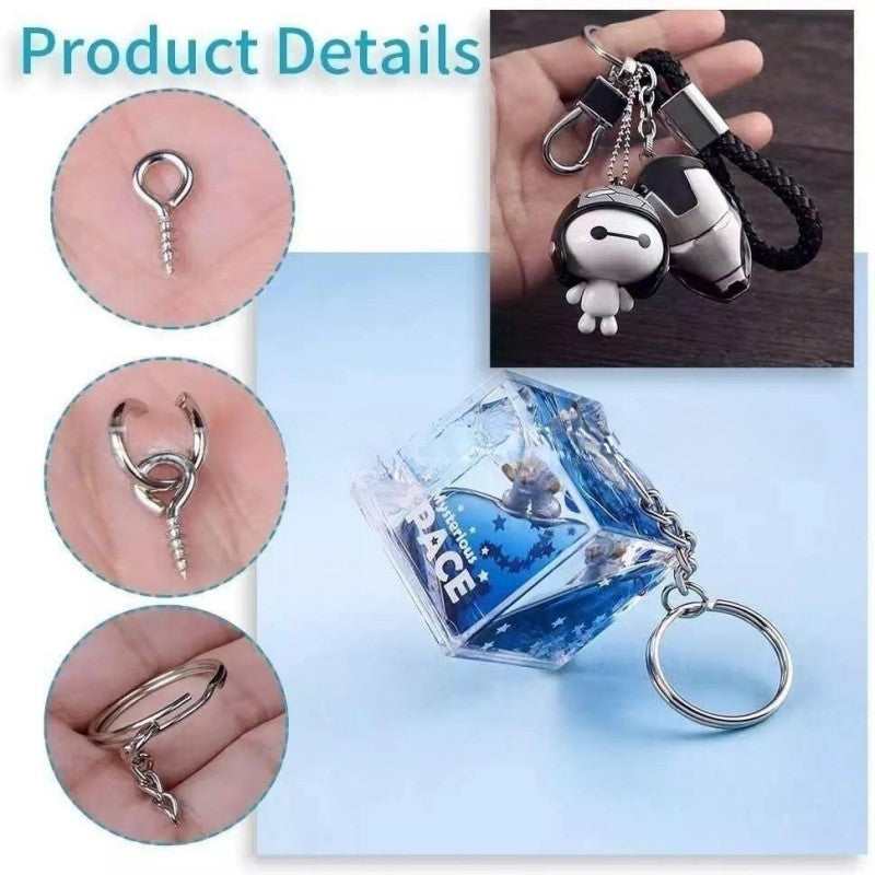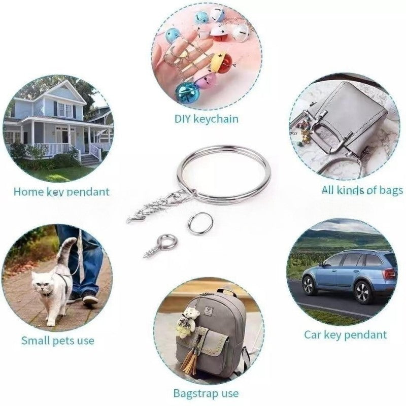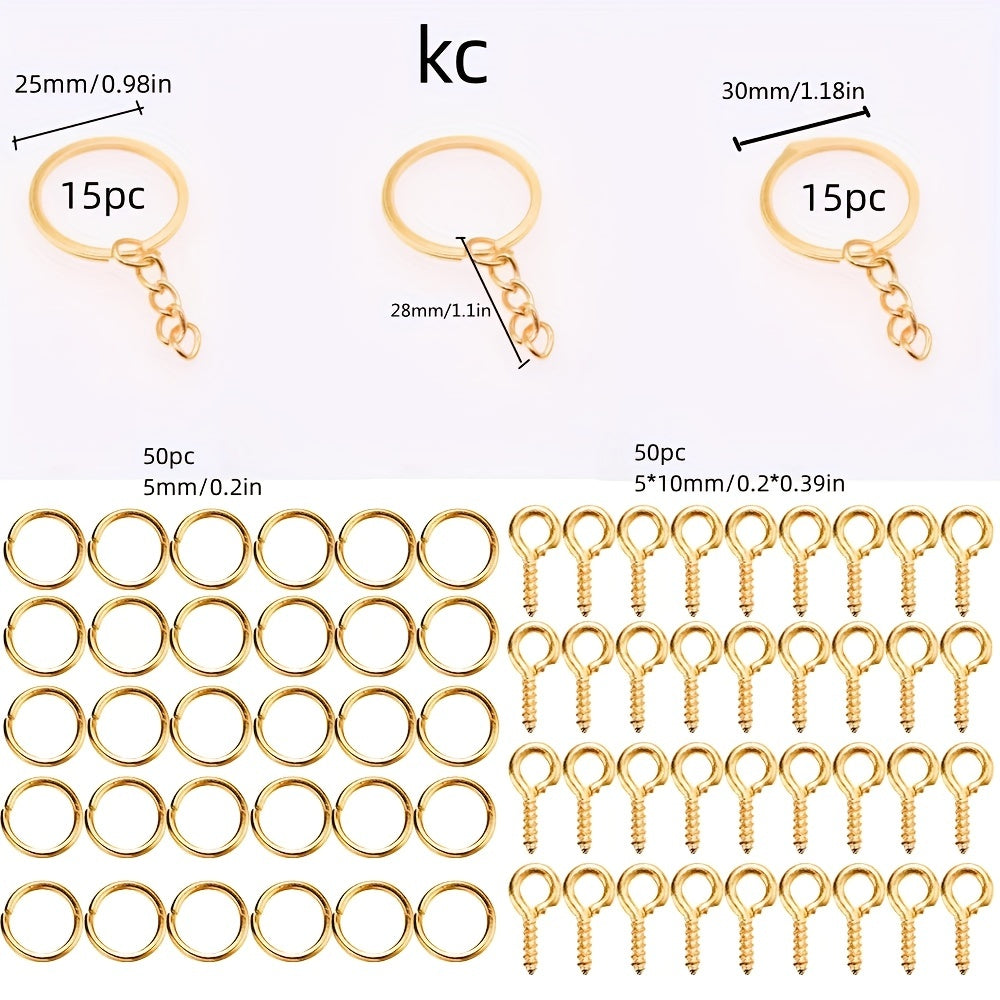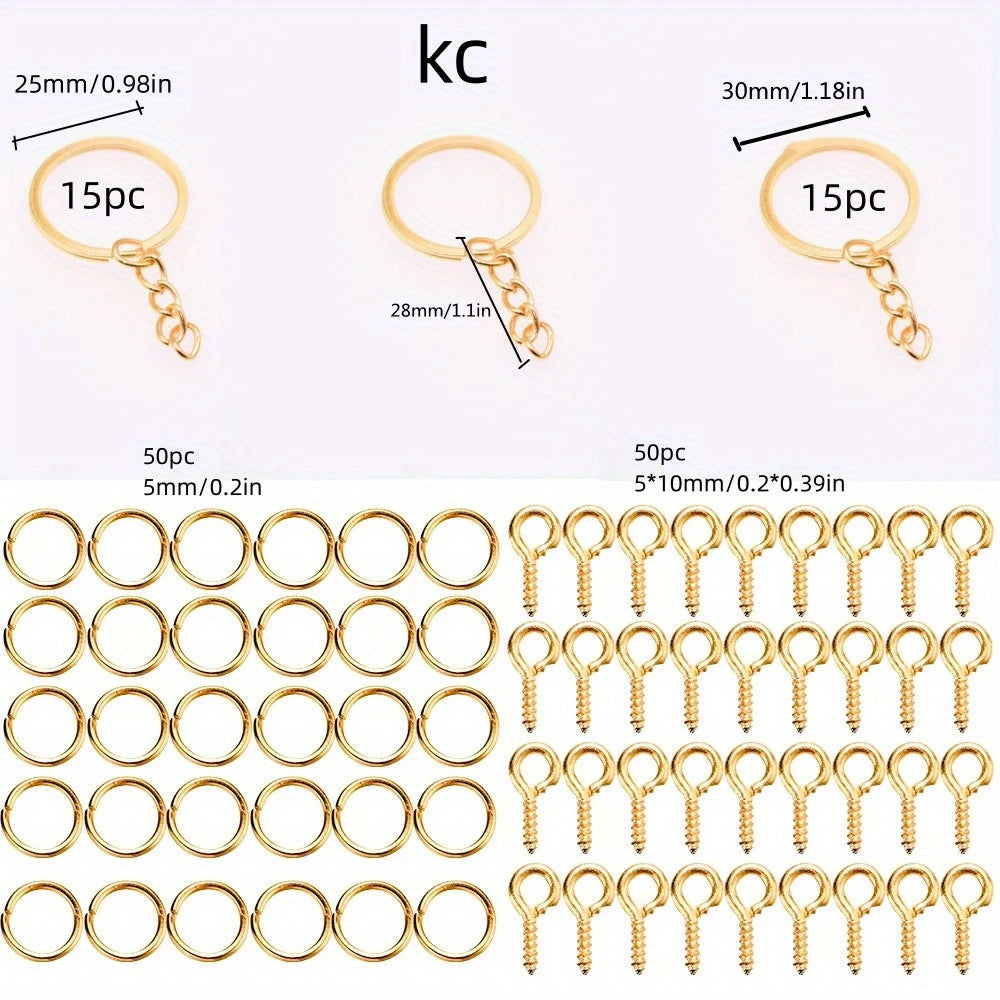 Create your own keychains with this set that includes 15 keychain rings, 50 jump rings, and 50 screw eye pins.