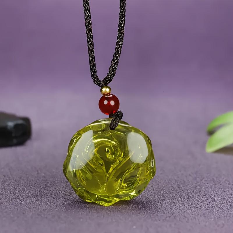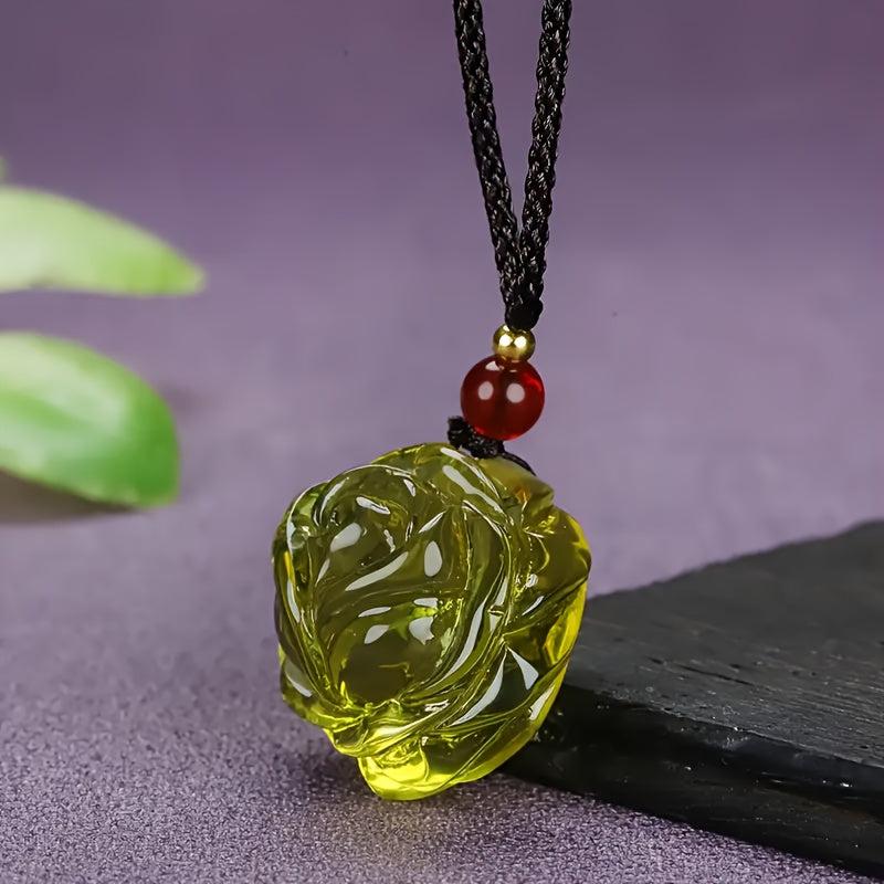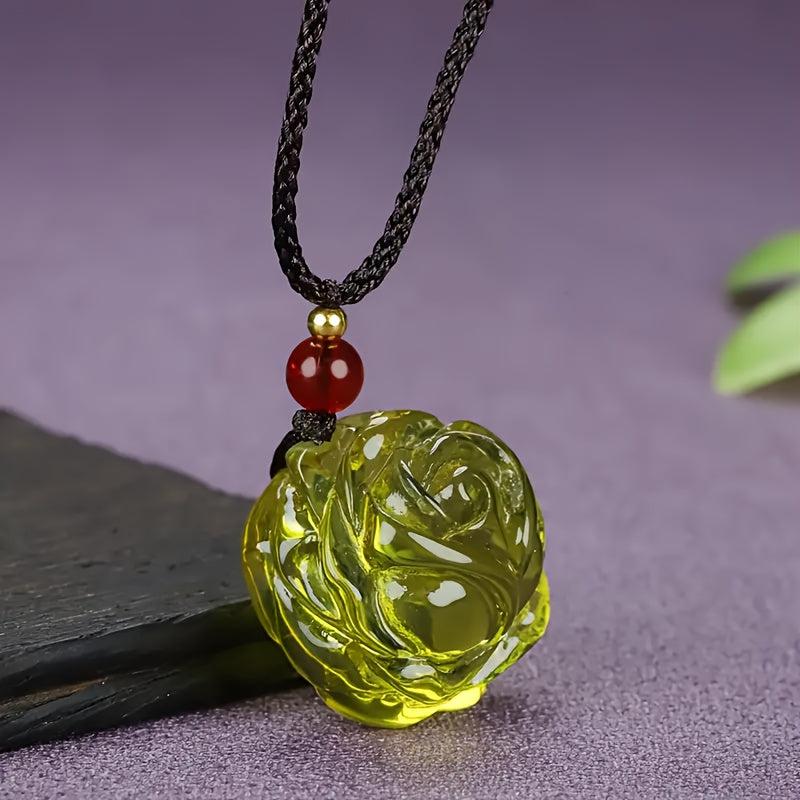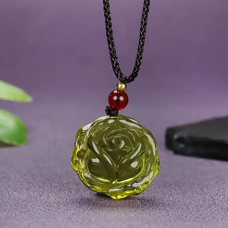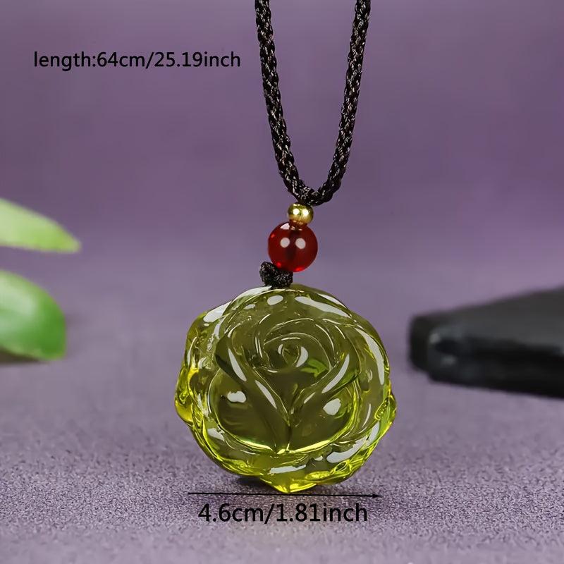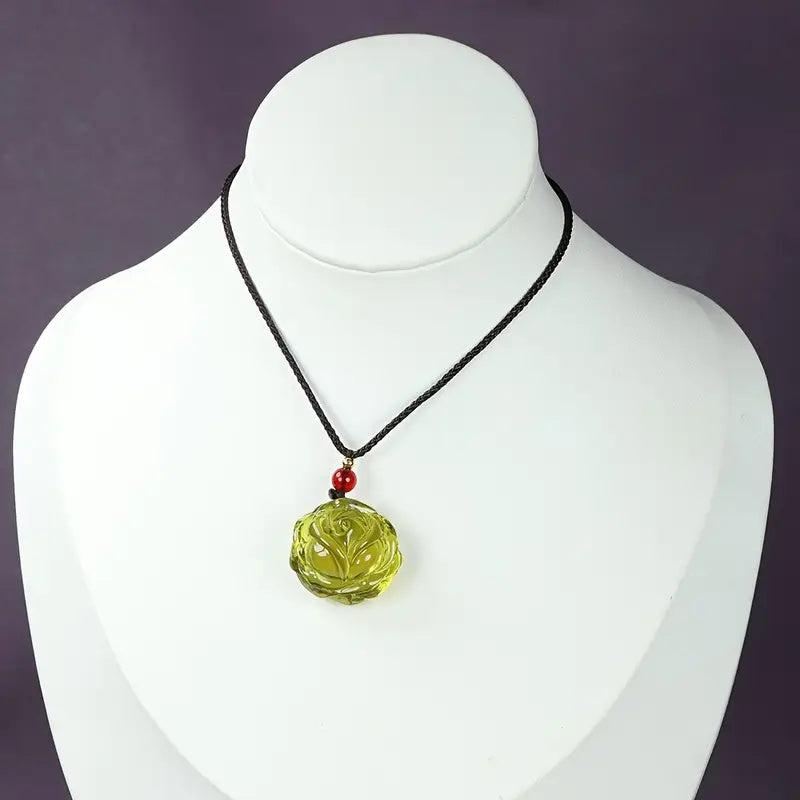 This pendant necklace is a perfect accessory for parties or casual attire. It features a beautiful Dominican amber rose pendant with a red bead, suitable for men and women.