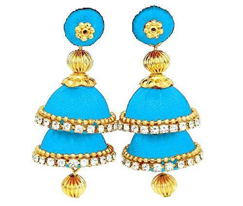 Make a statement with these stylish double decker silk jhumkas earrings, perfect for adding a touch of elegance to any outfit.