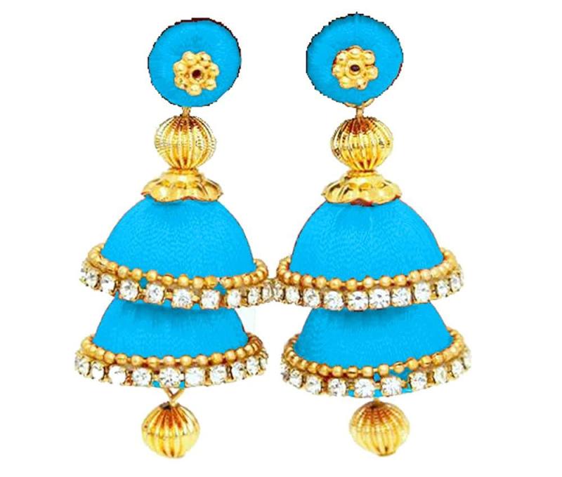 Double Decker Silk Jhumkas Earrings - Fashionable Ethnic Jewelry