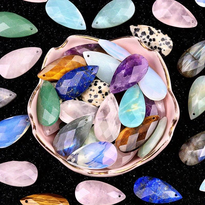 Add a touch of elegance to your handmade jewelry with these teardrop pendants. These faux gemstone charms come in assorted colors and patterns, offering a natural stone look.