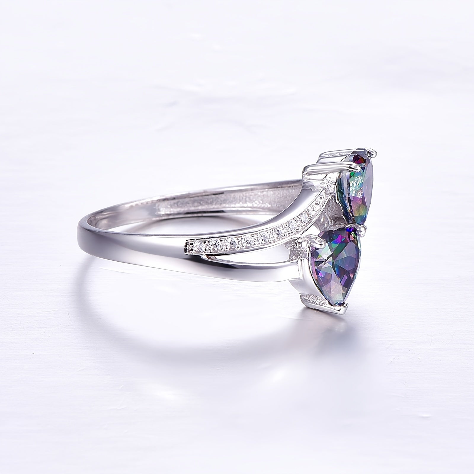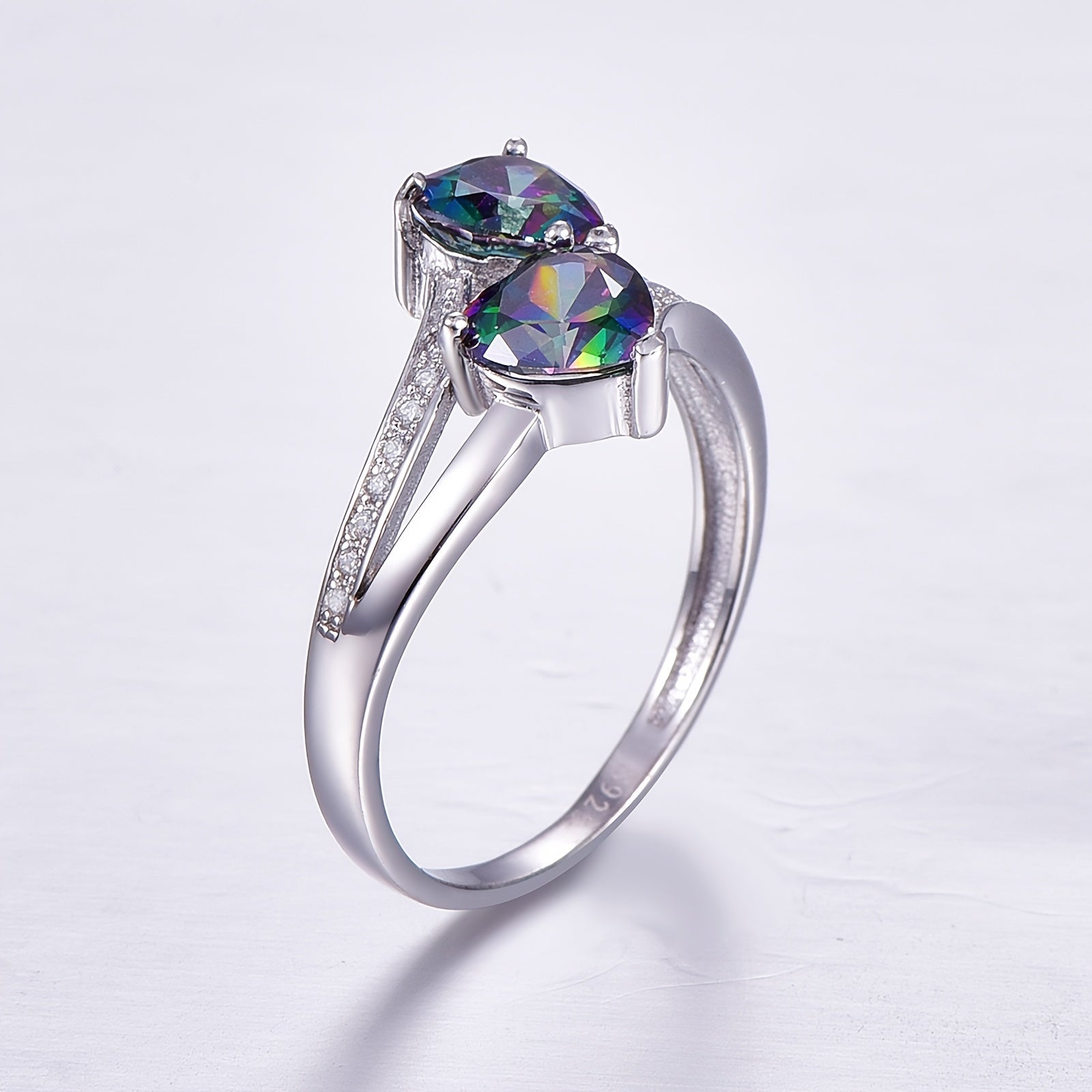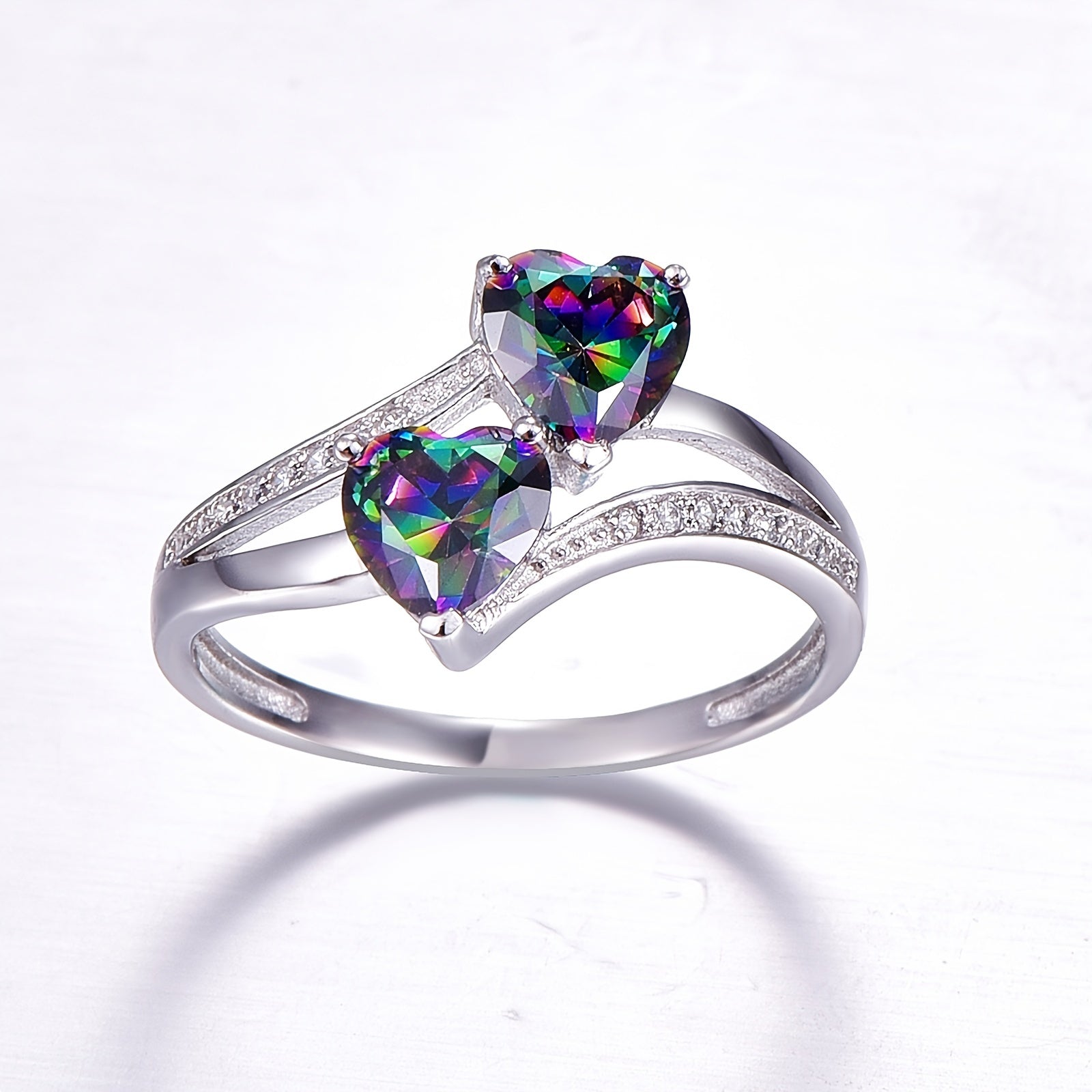 This stunning double heart ring features a lab-created rainbow topaz gemstone set in high-quality 925 sterling silver. It's a beautiful and elegant accessory for women.