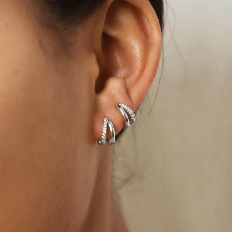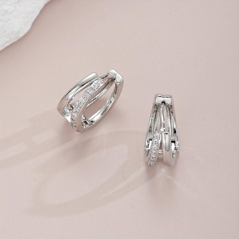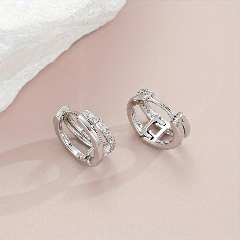 This set includes 2 pairs of C-shaped double-layer ear studs with water drill, perfect for vacation, parties, dates, and daily wear. Make a stylish statement with these elegant earrings.