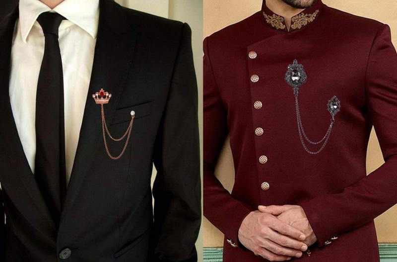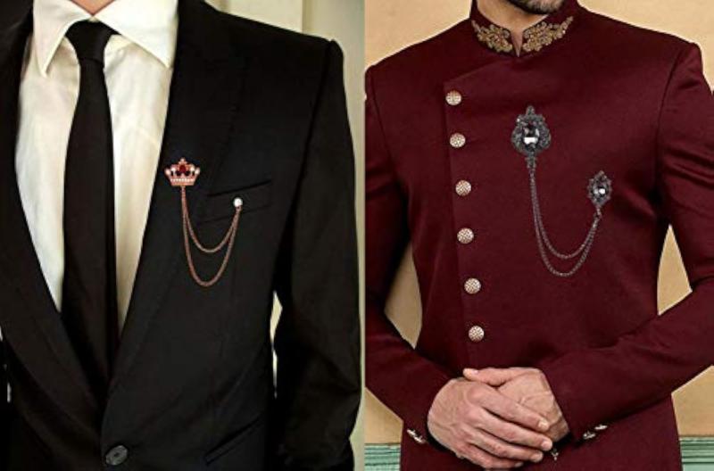Elegant brooch for wedding or special occasions, featuring a long double layer chain design.