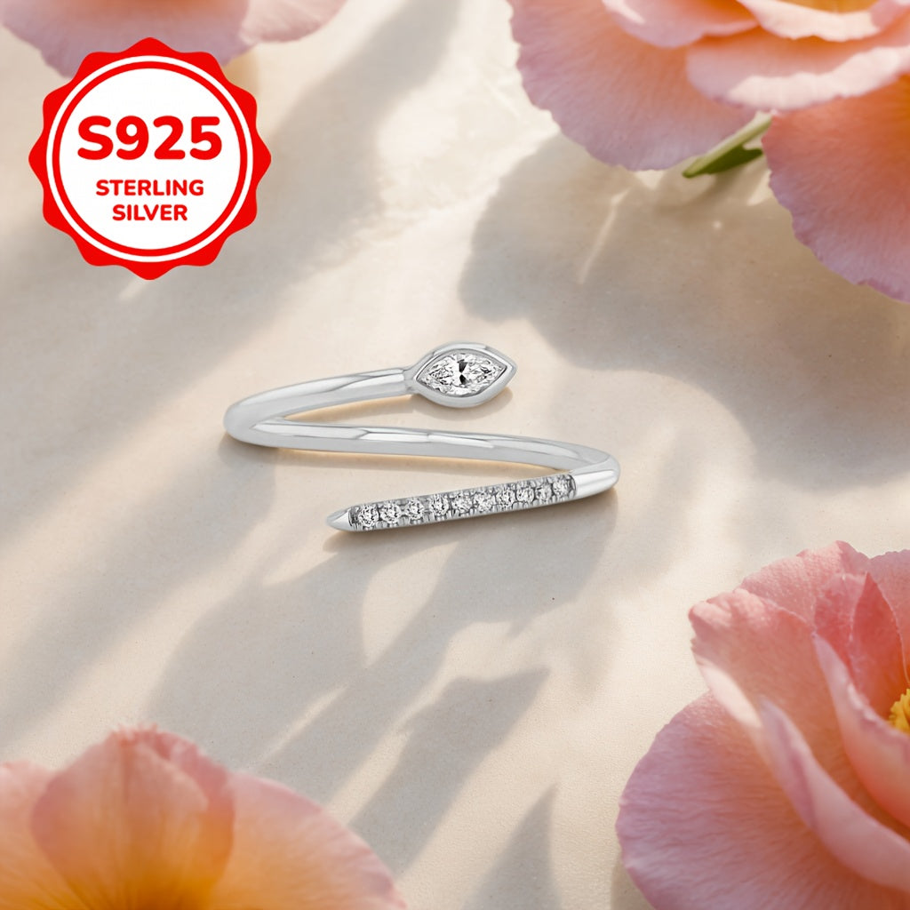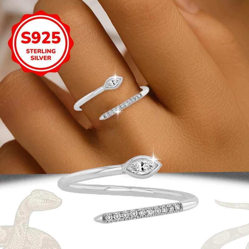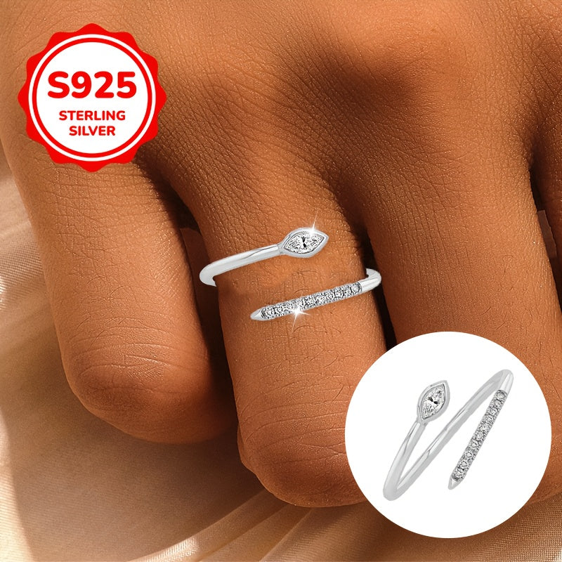 This stylish open ring features a double layer of dazzling cubic zirconia stones set in solid S925 silver. It's a versatile piece that adds a touch of glamour to any outfit.