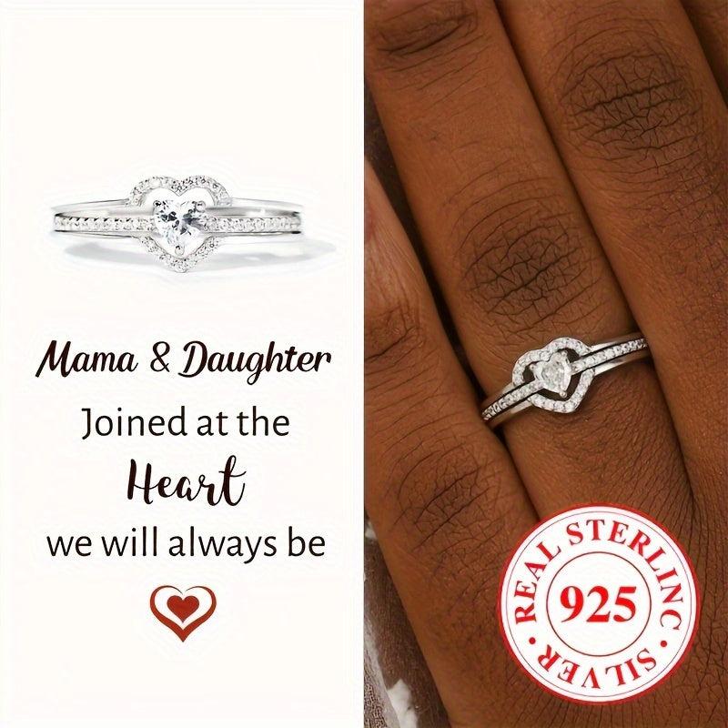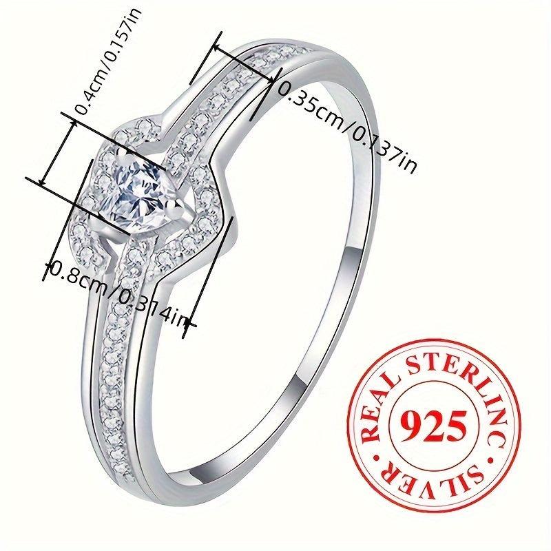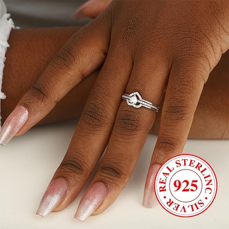 Elegant double layer heart-shaped engagement ring made of 2.5 grams of 925 sterling silver adorned with sparkling zirconia. Perfect as a high-end jewelry gift.