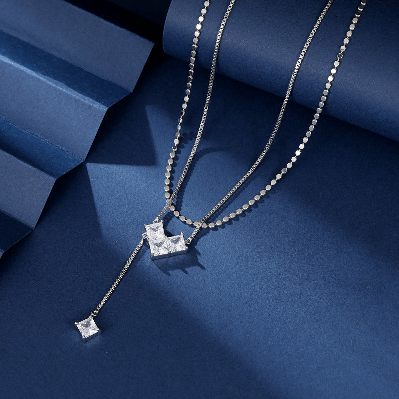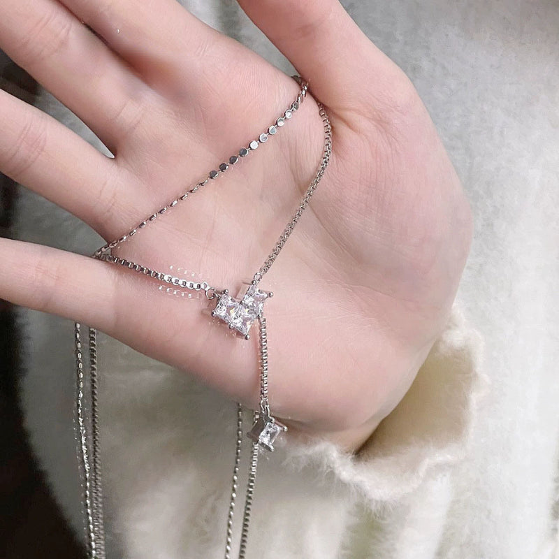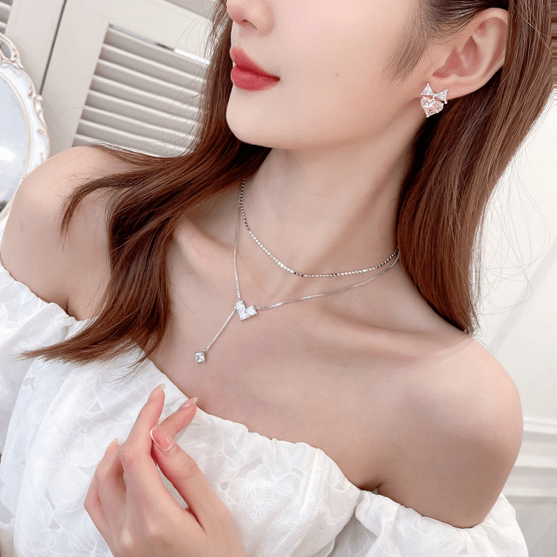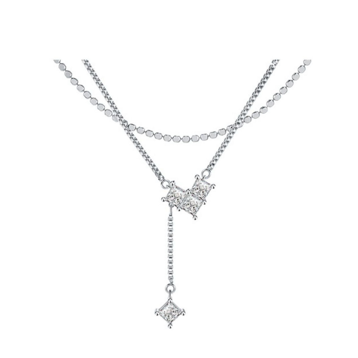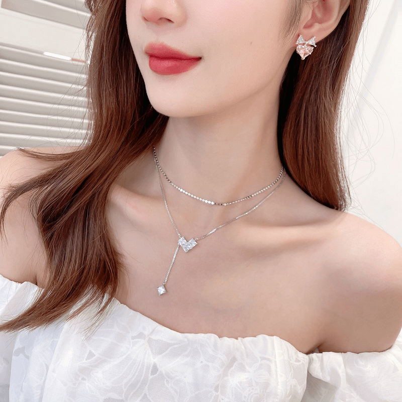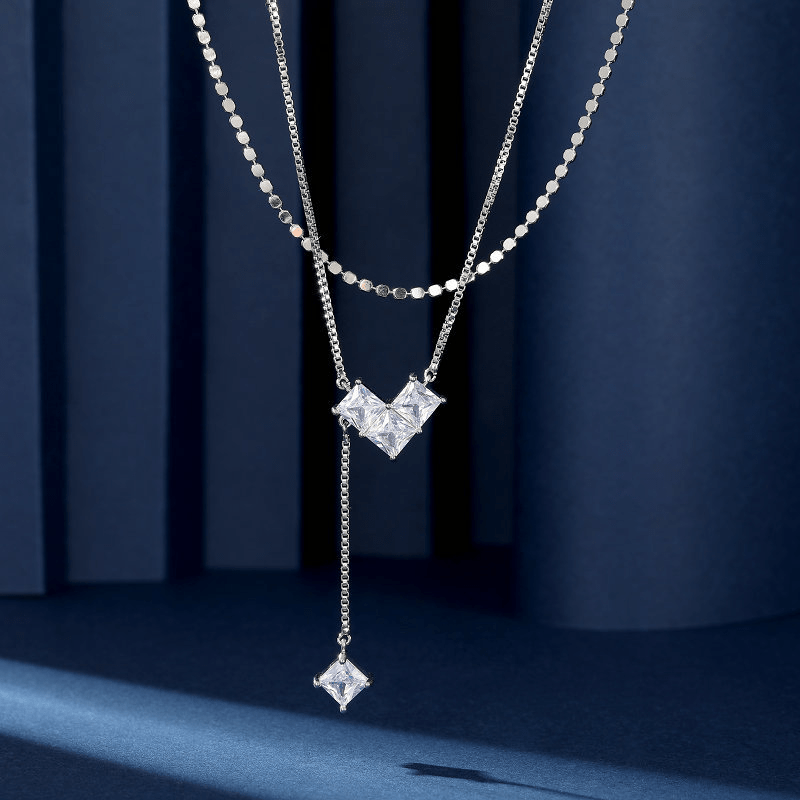 This double layer necklace features a stacking clavicle chain with a romantic love pendant design. Perfect for adding a touch of elegance to any outfit.