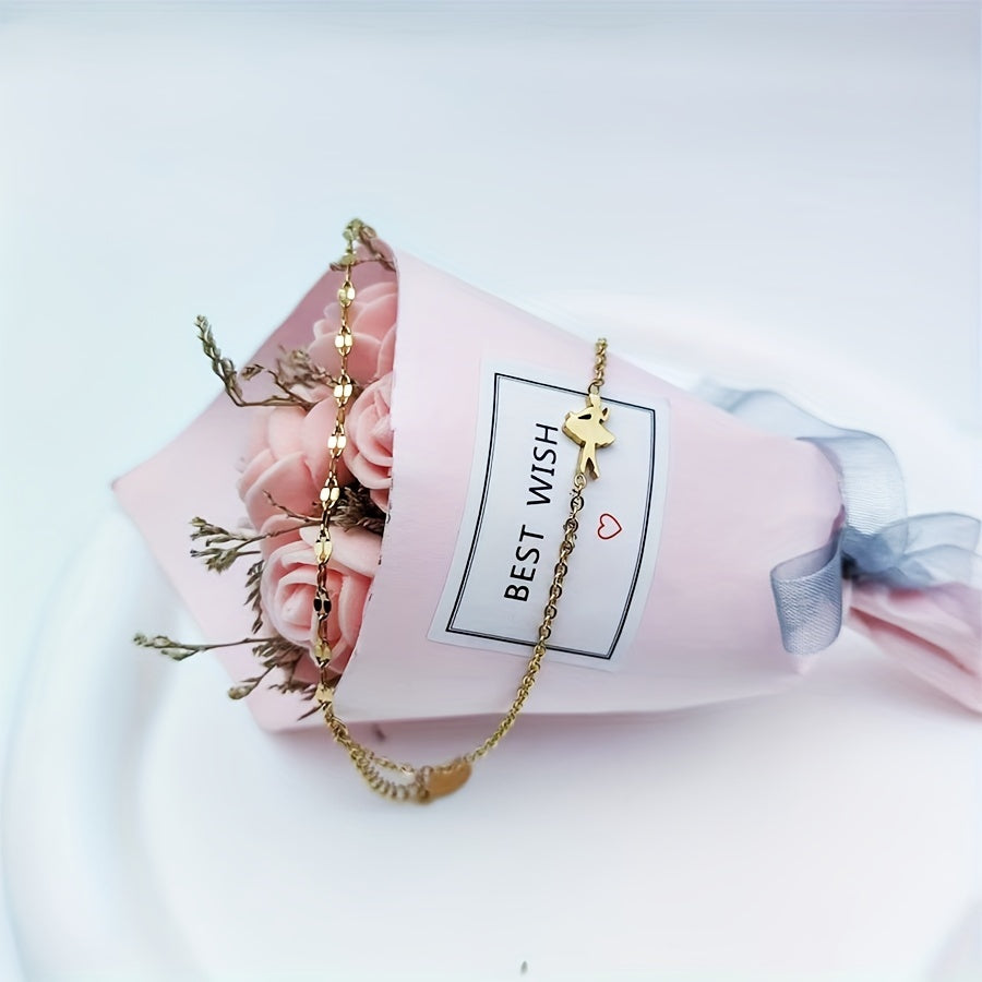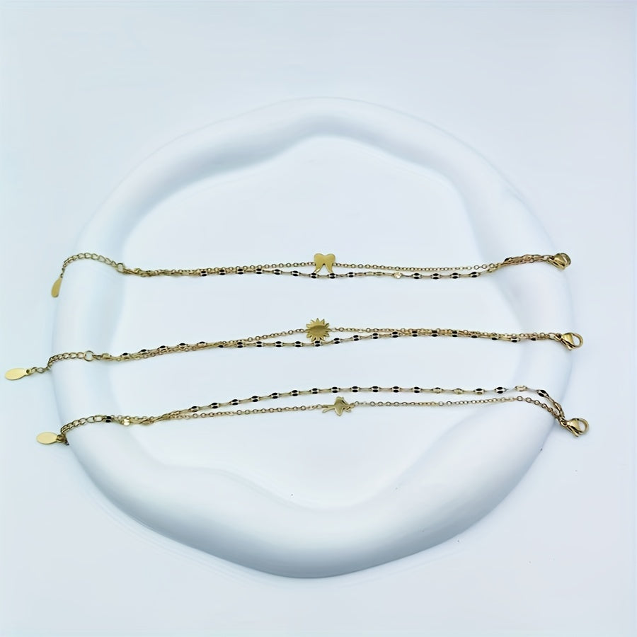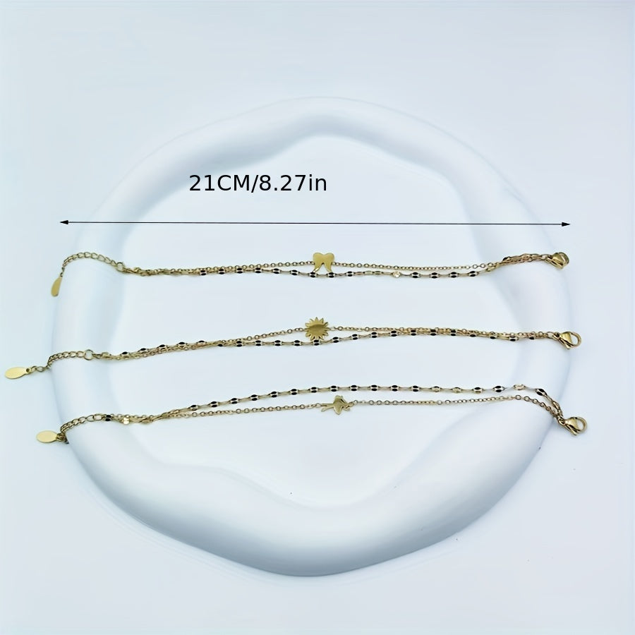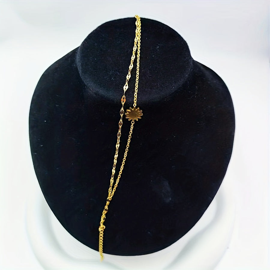 This hypoallergenic stainless steel bracelet is perfect for men and women. It features a double layer design that adds a stylish touch to any outfit.