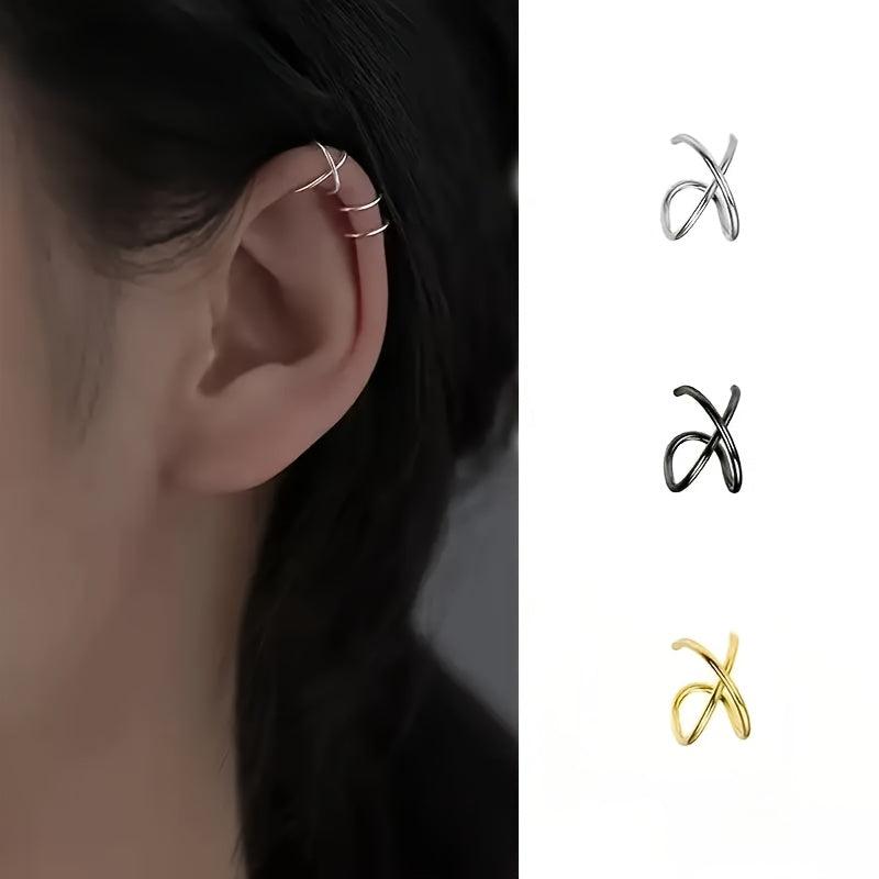 Elegant silvery tone ear cuff earrings for both men and women. No piercing required, made of durable stainless steel material.