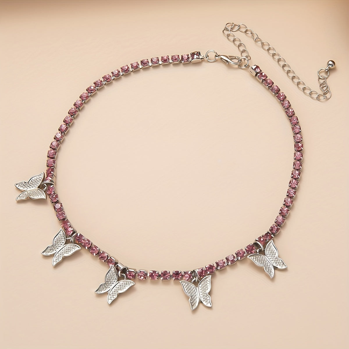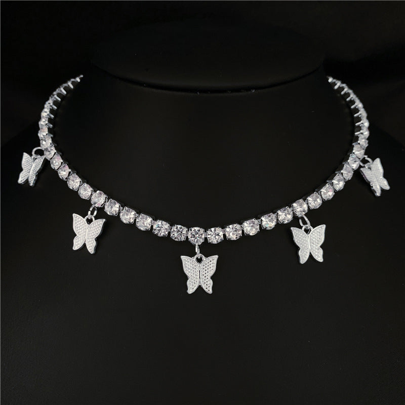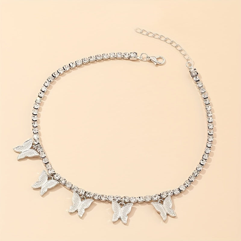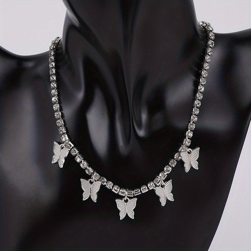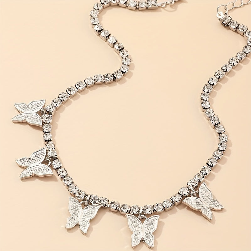 Elevate your style with this fashionable double row butterfly necklace featuring sparkling rhinestones.