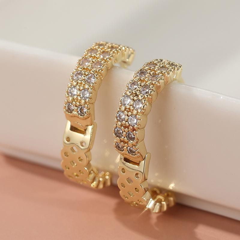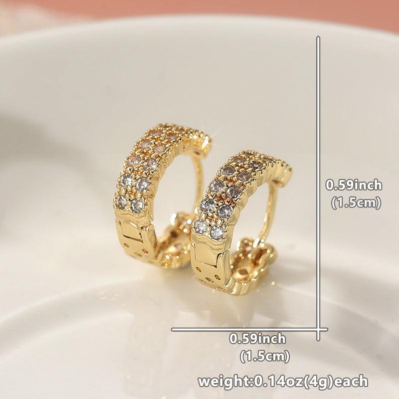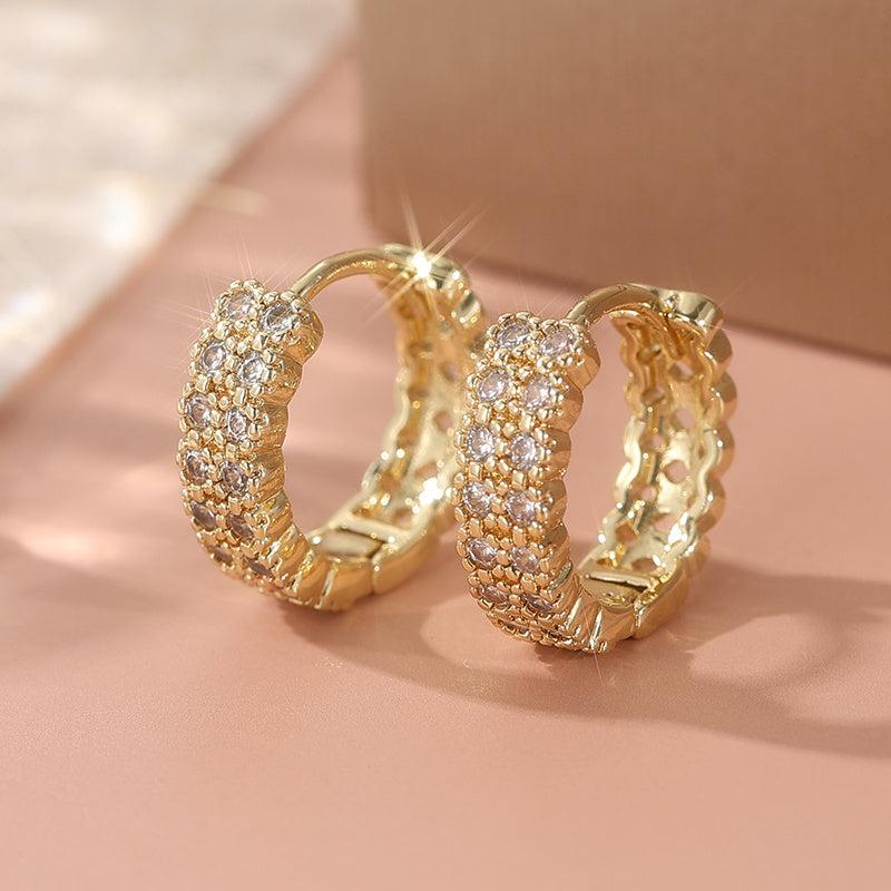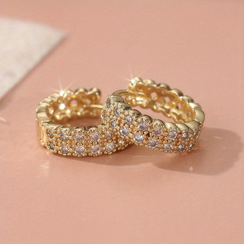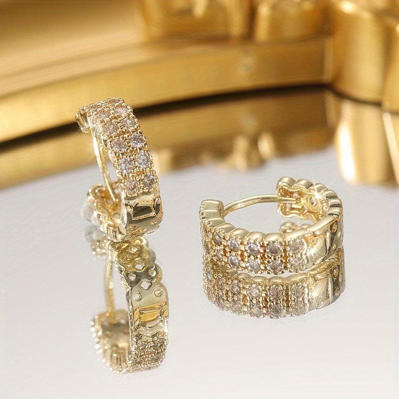 These elegant double row hoop earrings feature cubic zirconia stones in a golden tone, perfect for everyday wear or special occasions.