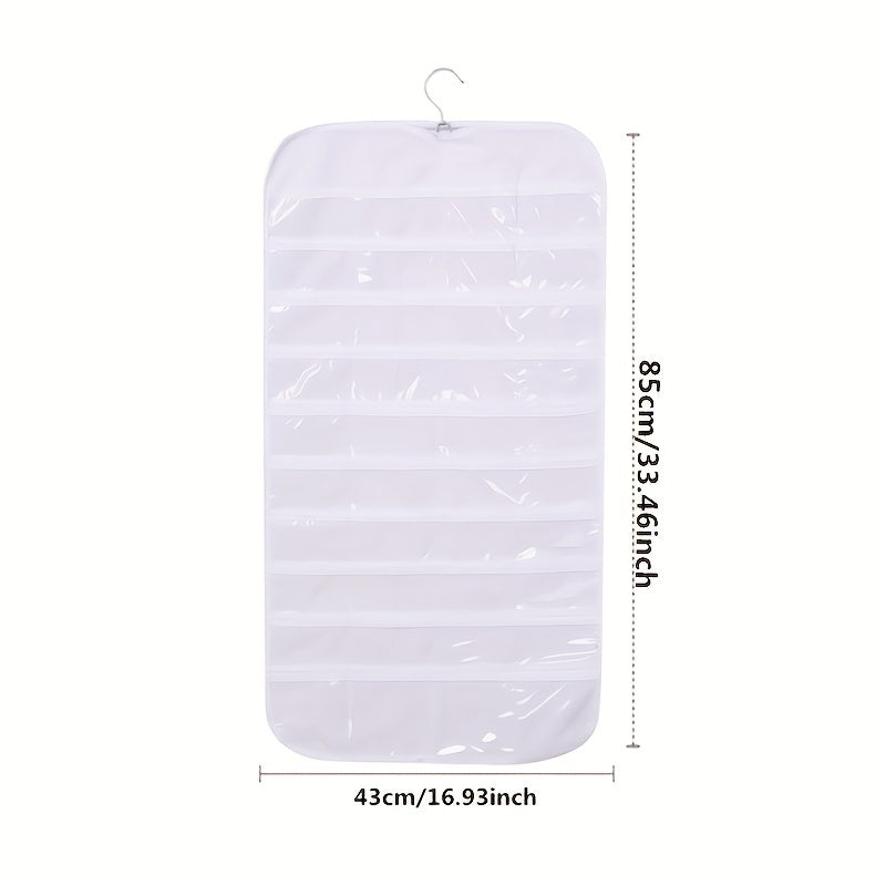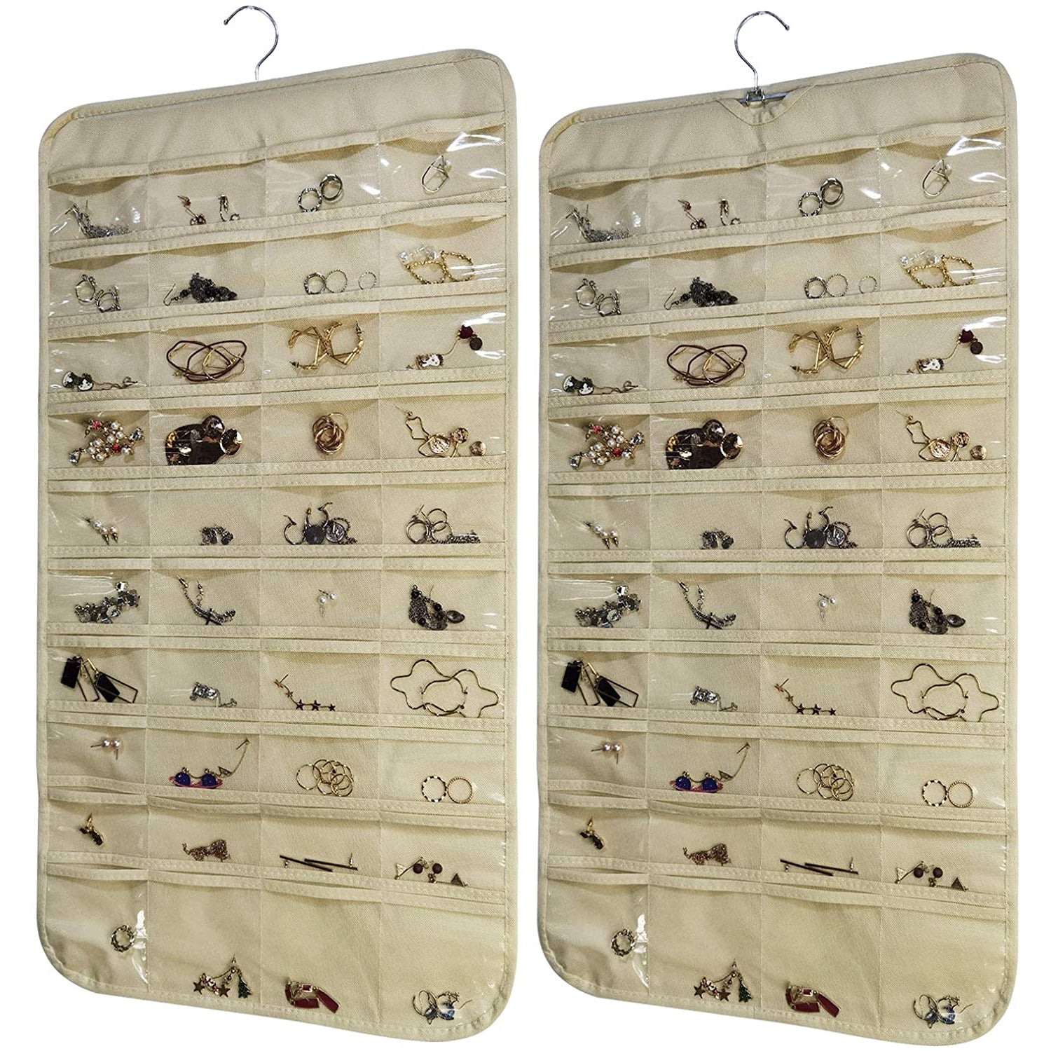 Keep your jewelry organized with this double-sided hanging organizer featuring 80 grids. It's perfect for necklaces, bracelets, earrings, and more.