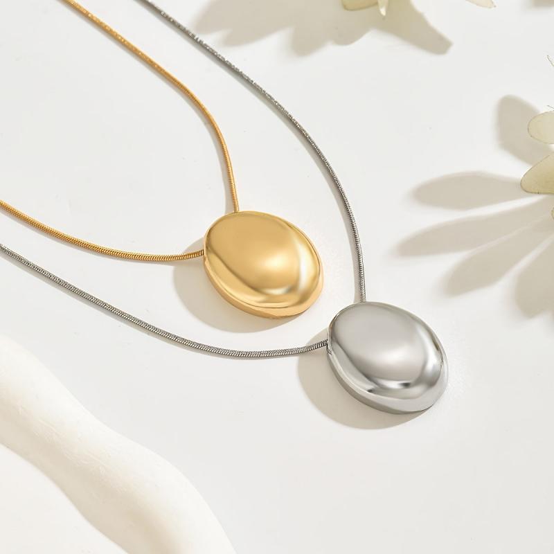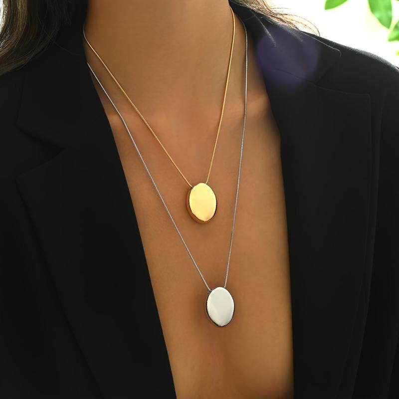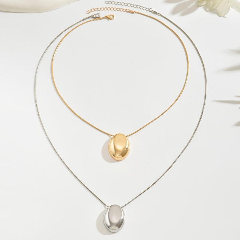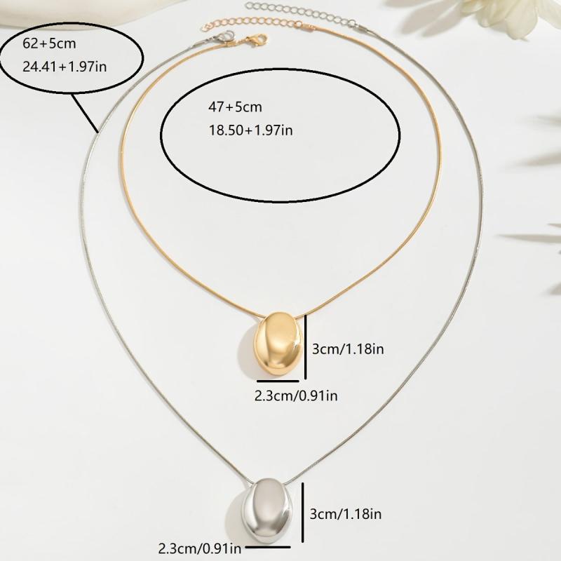 Enhance your everyday style with this set of 2 delicate snake chain necklaces featuring glossy oval pendants. Versatile and chic, wear them together or separately for a fashionable look.