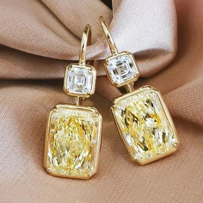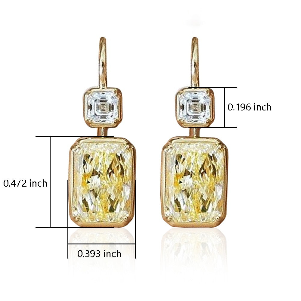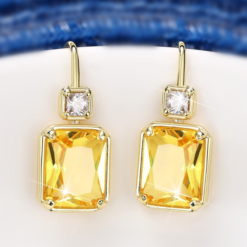 These elegant earrings feature a double square shape design with zircon pendants, perfect for daily wear.