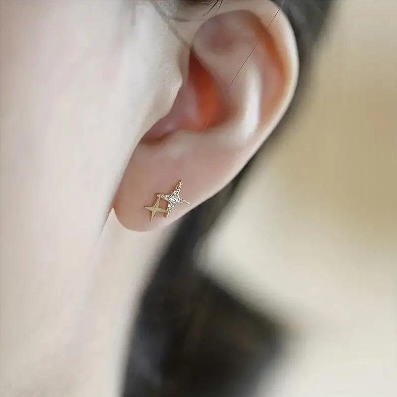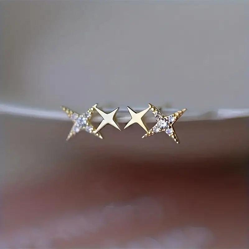 Enhance your glamour with this pair of double star earrings, perfect for daily wear or special occasions.