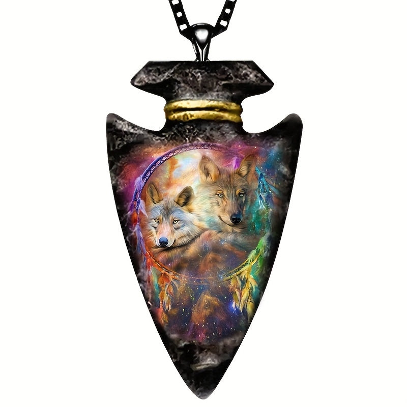 This colorful and creative pendant necklace features a double wolf design, making it a perfect accessory for parties, banquets, or as an anniversary gift. Suitable for both men and women.