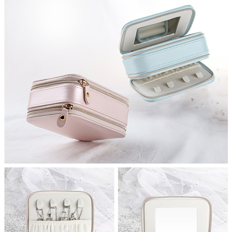 Keep your rings, earrings, necklaces, and makeup accessories organized in this portable storage box. The PU leather design adds a touch of elegance to your collection.