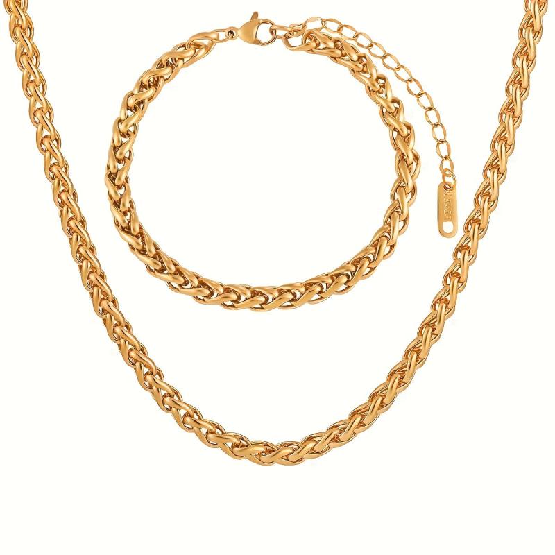 Elevate your style with this Dragon Bone Flower Basket Necklace Bracelet Set made of stainless steel. Perfect for hip hop enthusiasts!