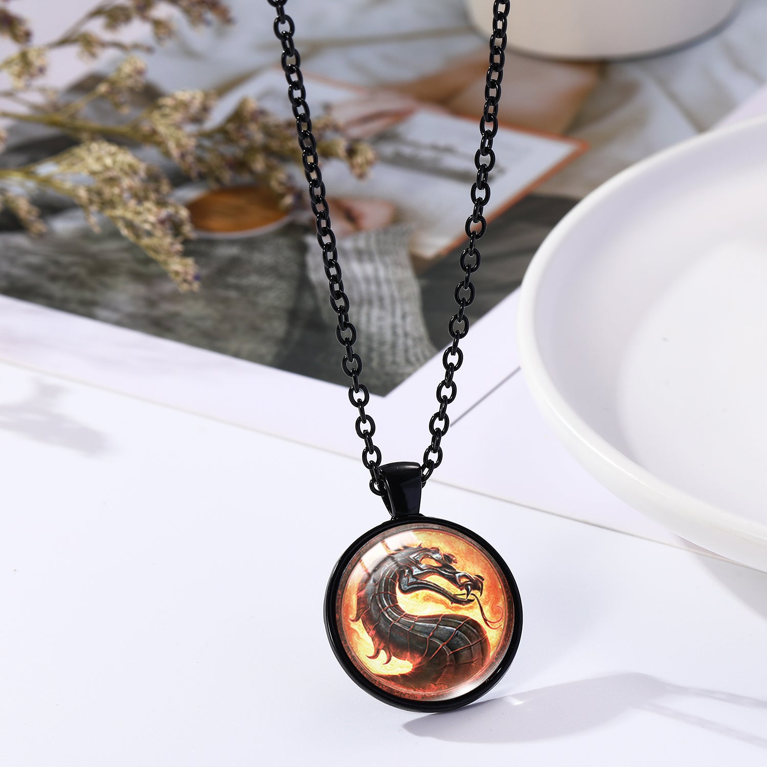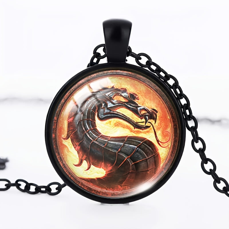 This unique necklace features a dragon graphic design and a beautiful artificial gemstone pendant. Perfect for adding a touch of mystique to your outfit.