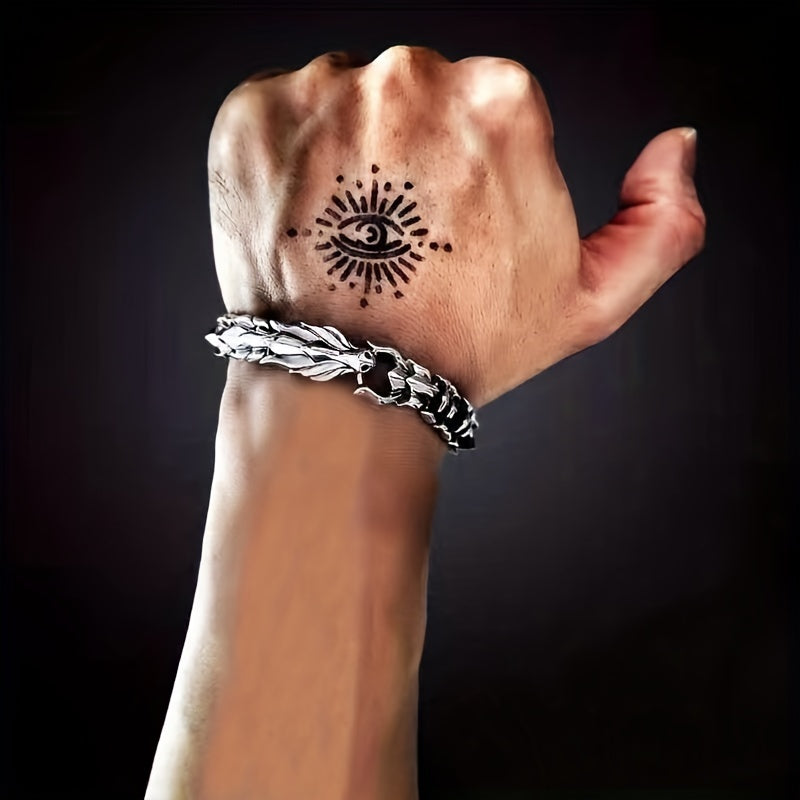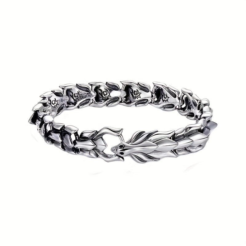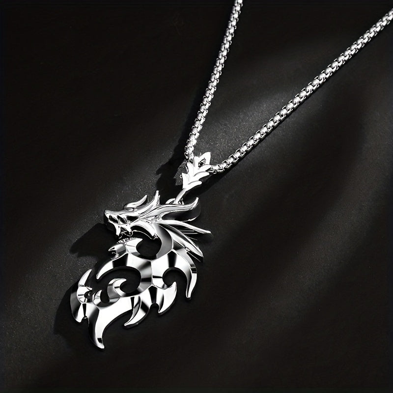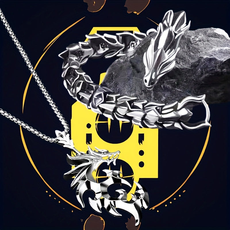 This set includes a dragon pendant necklace and a sleek keel bracelet. Perfect jewelry gift for men, couples, or women.