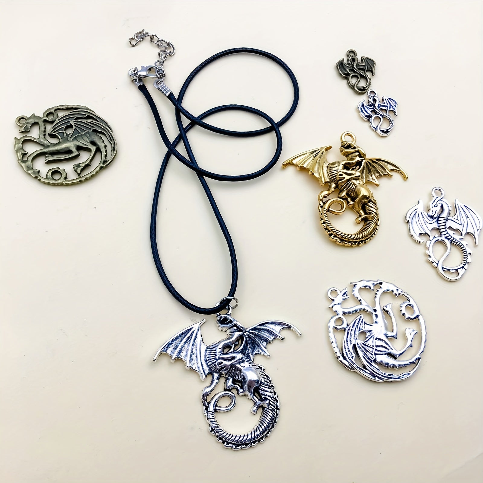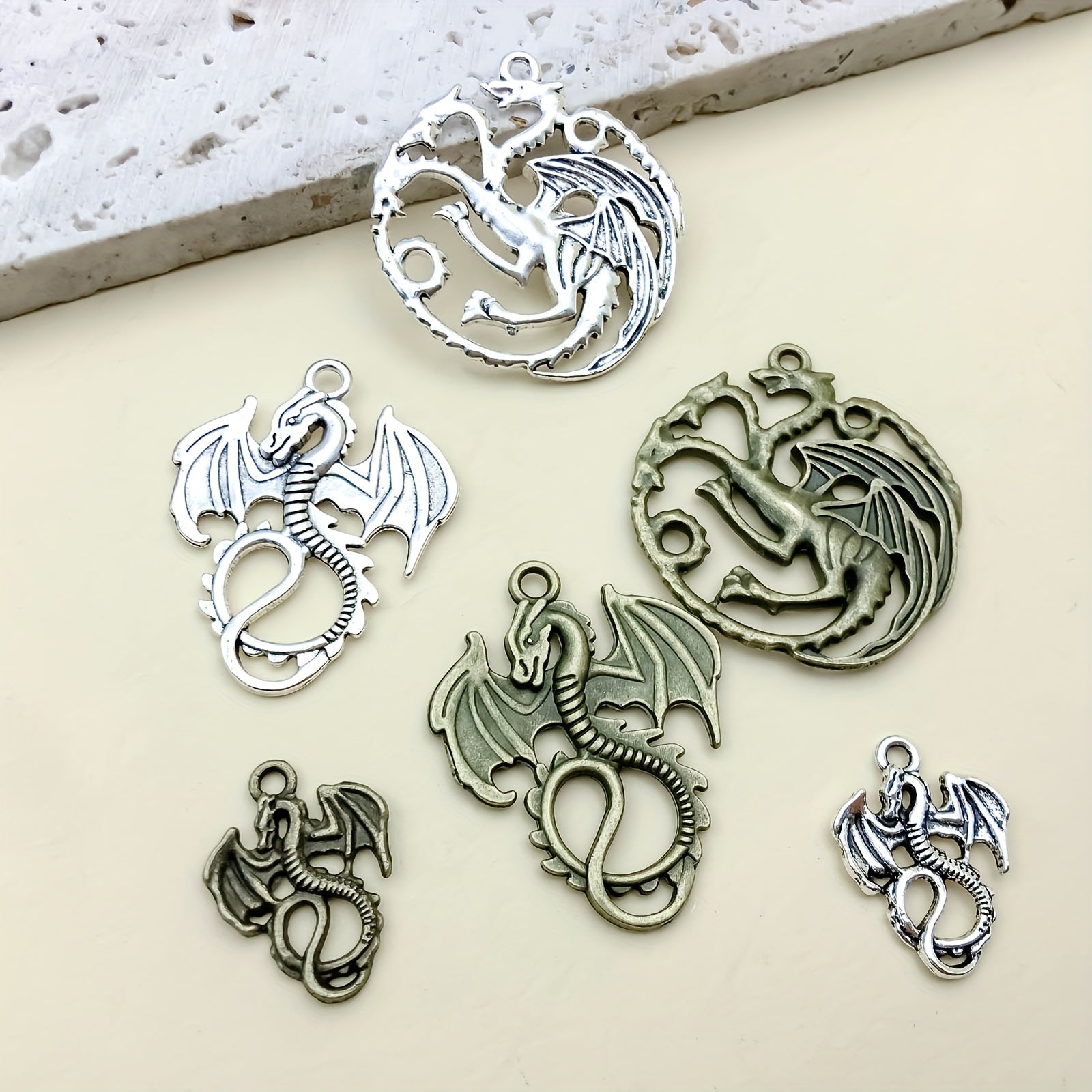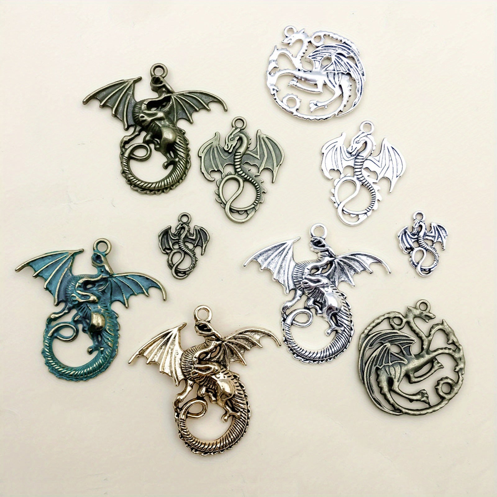 Explore your creativity with this set of 10 alloy dragon shape charms pendants that are perfect for designing necklaces, bracelets, and earrings. Add a touch of mystical charm to your jewelry creations.