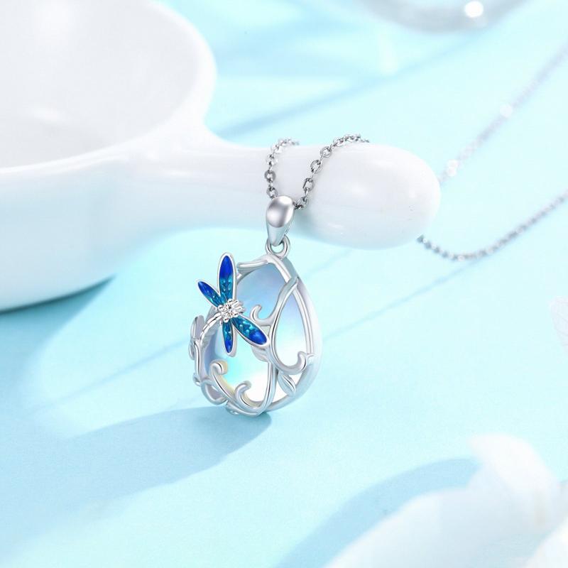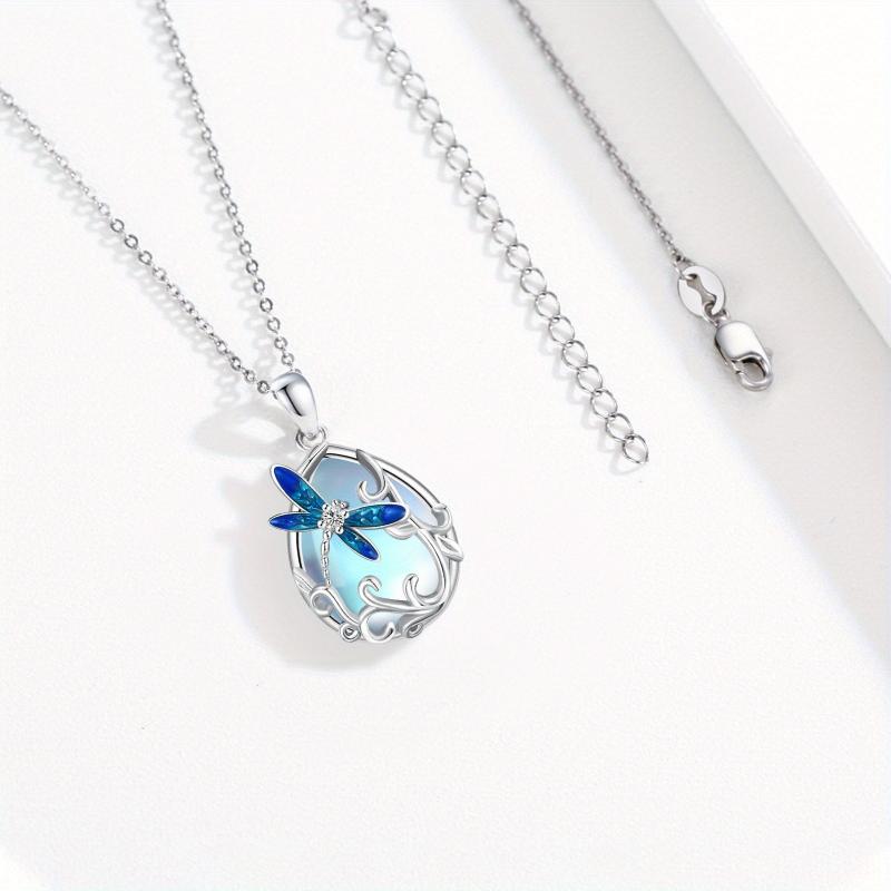 This elegant dragonfly necklace is made of 925 sterling silver with a moonstone pendant. Perfect gift for mom or girlfriend on their birthday.