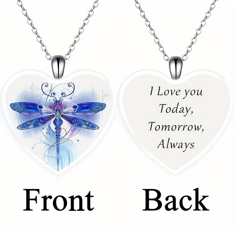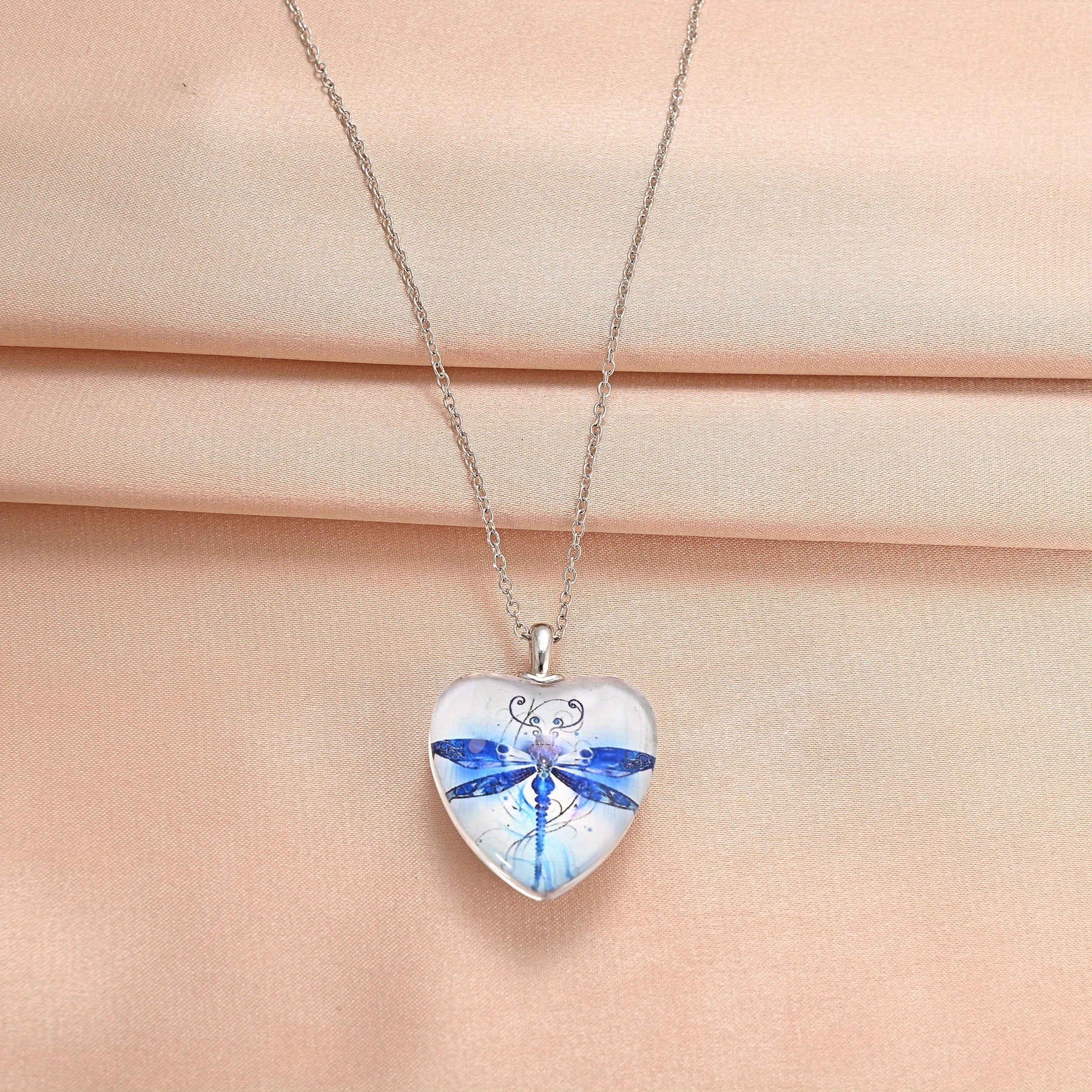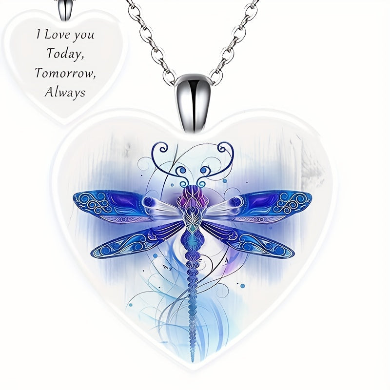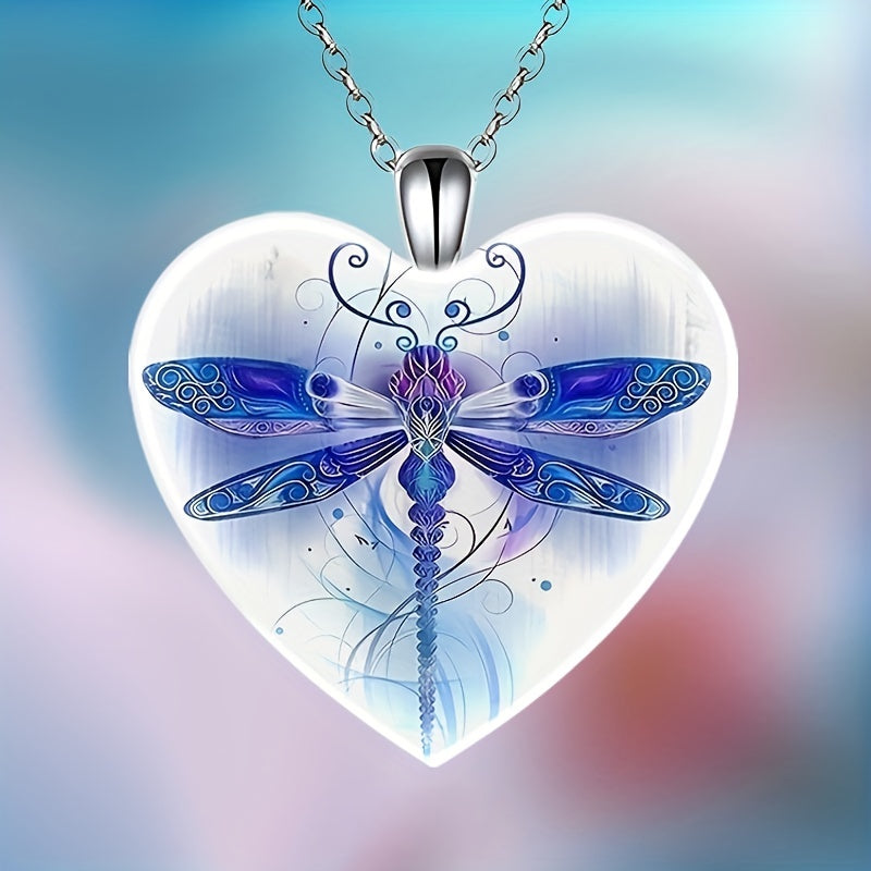 This exquisitely designed heart-shaped pendant necklace features a fantasy dragonfly pattern, perfect for adding a touch of magic to your outfit. It makes a wonderful gift for Christmas, banquets, couples, holiday parties, birthdays, and more.