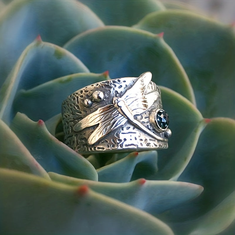 Vintage dragonfly pattern ring suitable for both men and women. Made of high-quality material, it is a stylish accessory for casual wear.