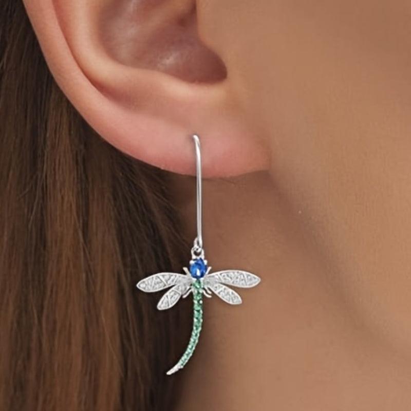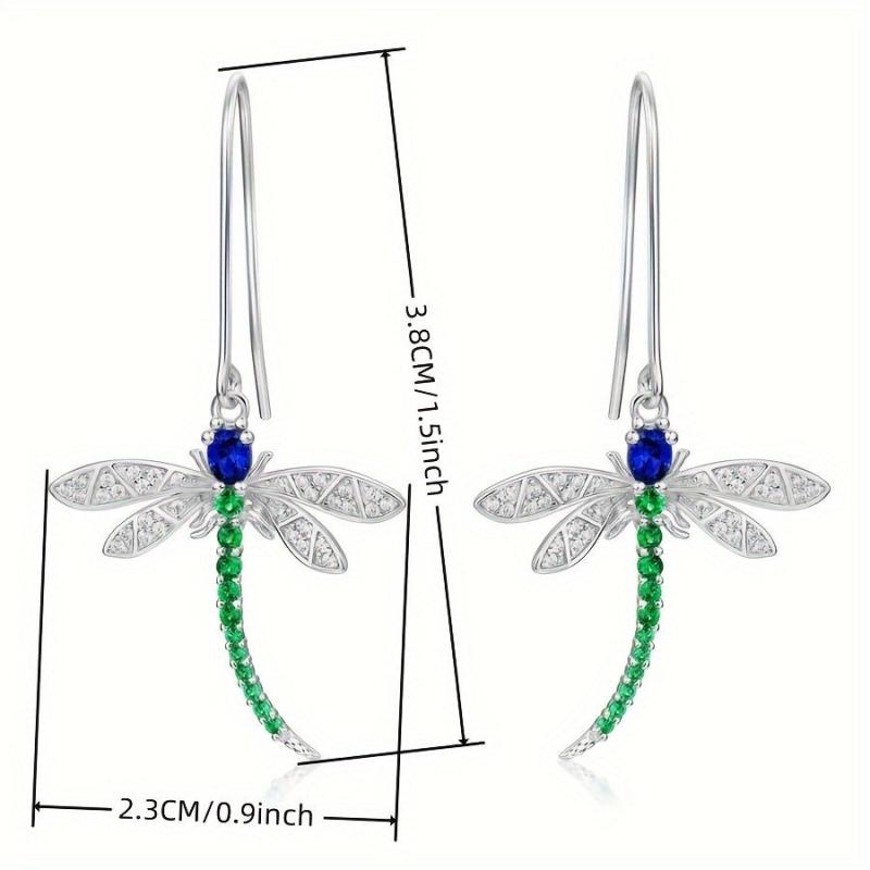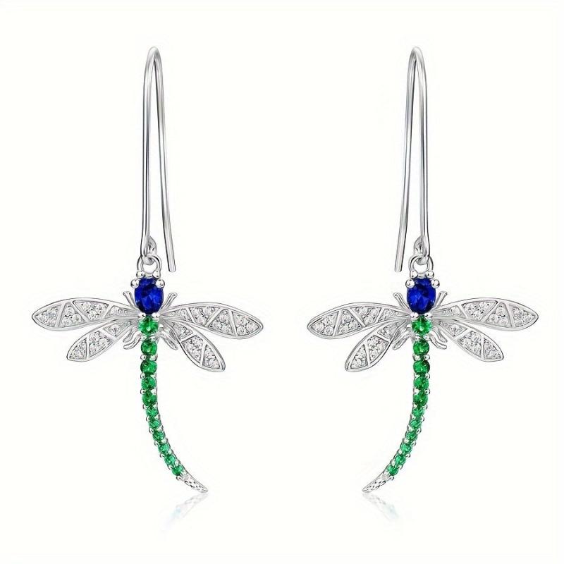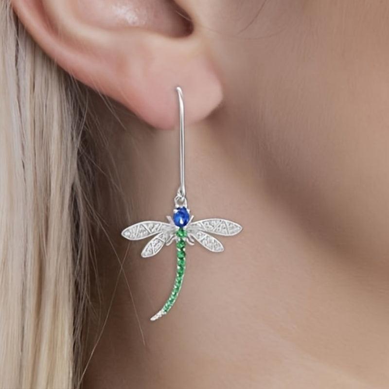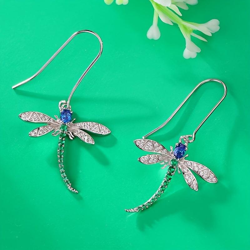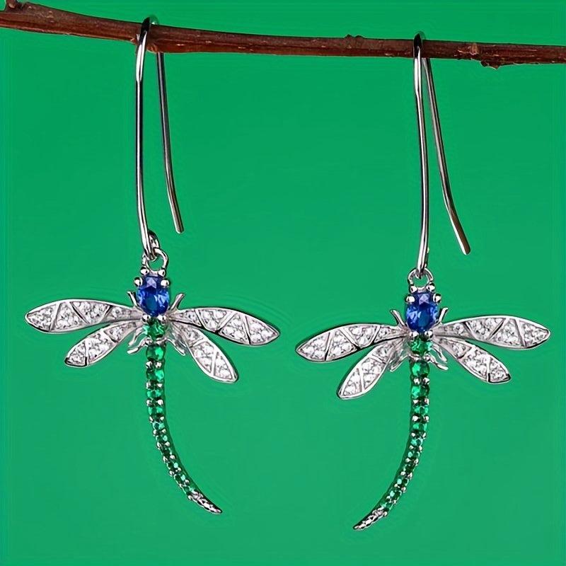 Exquisite dragonfly design earrings with green gemstones for women's daily wear or party jewelry.