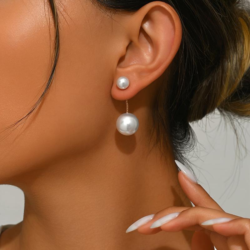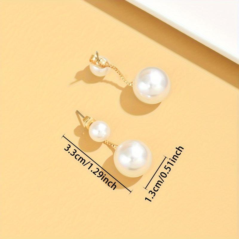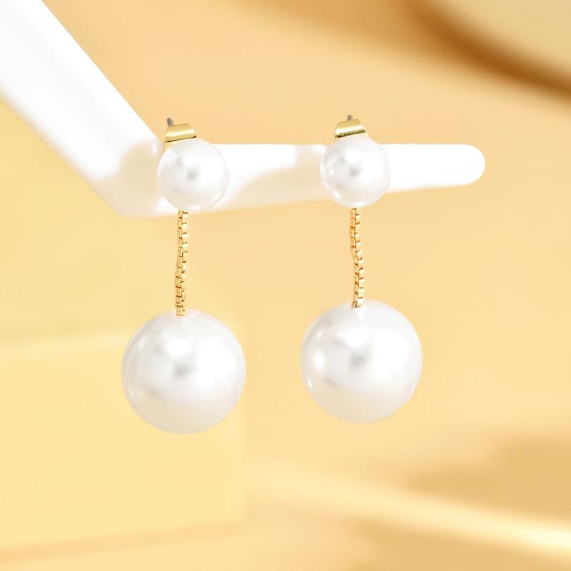 Enhance your style with this pair of drop earrings featuring artificial pearl inlays. Perfect for daily wear and special occasions, adding beauty and elegance to your outfits.