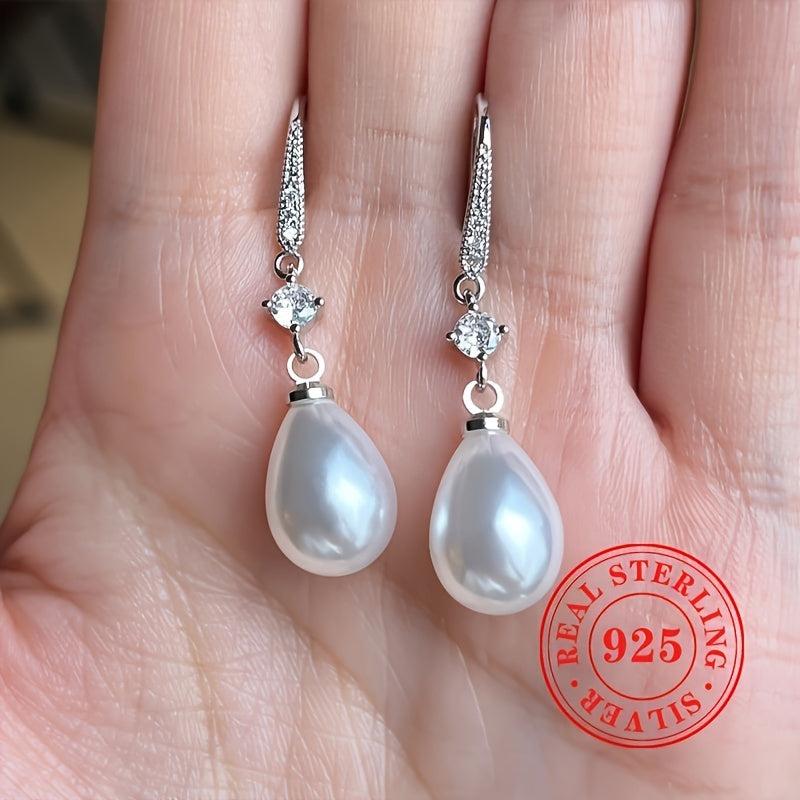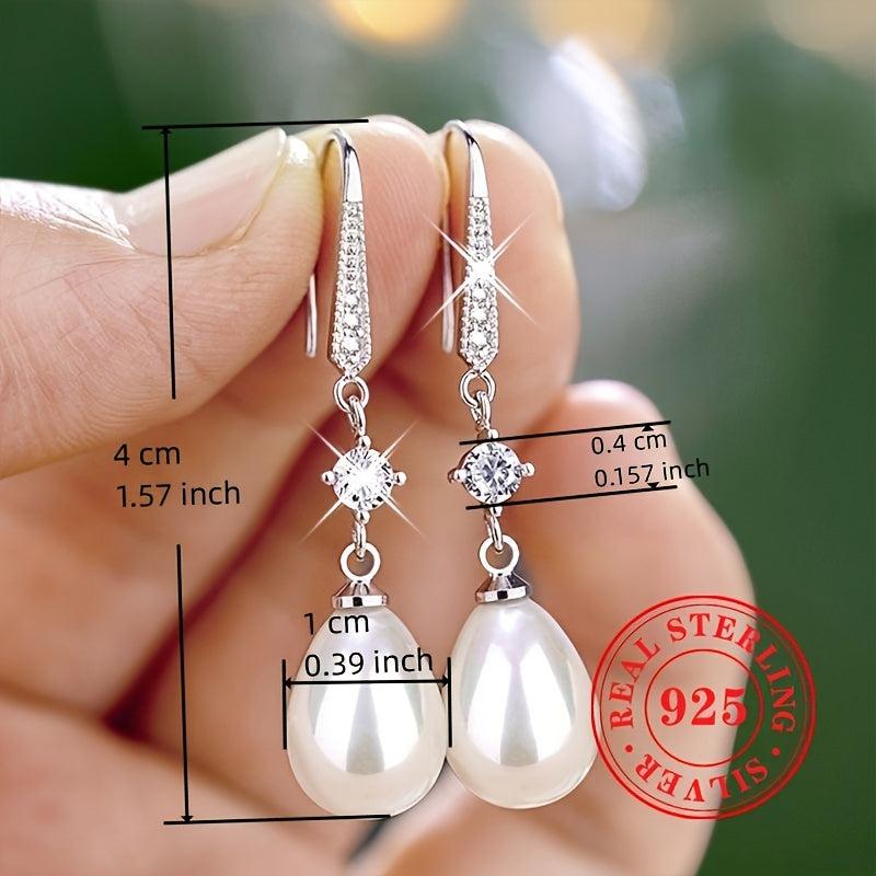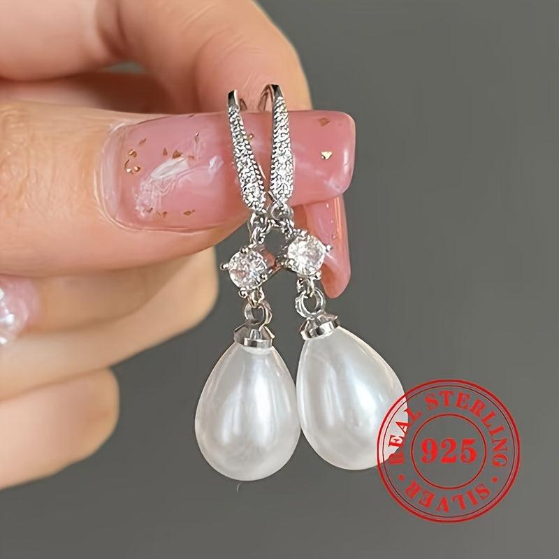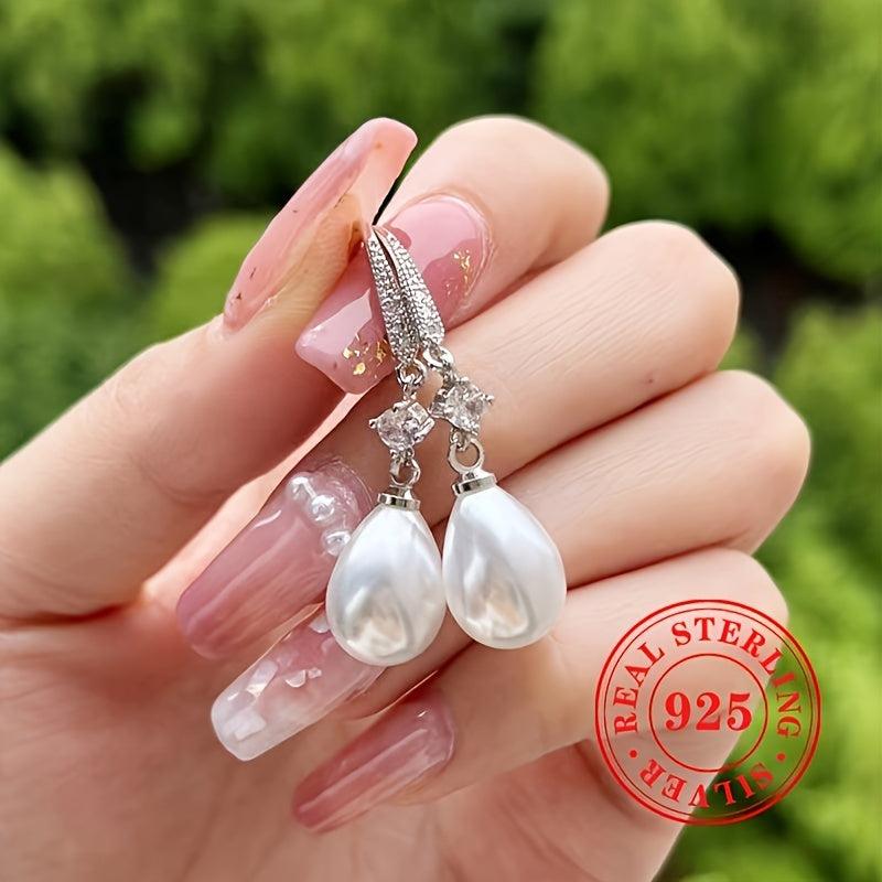 Elevate your style with these fashionable drop earrings featuring a teardrop faux pendant design. Made of S925 sterling silver, these earrings are perfect for engagements, weddings, or everyday wear.
