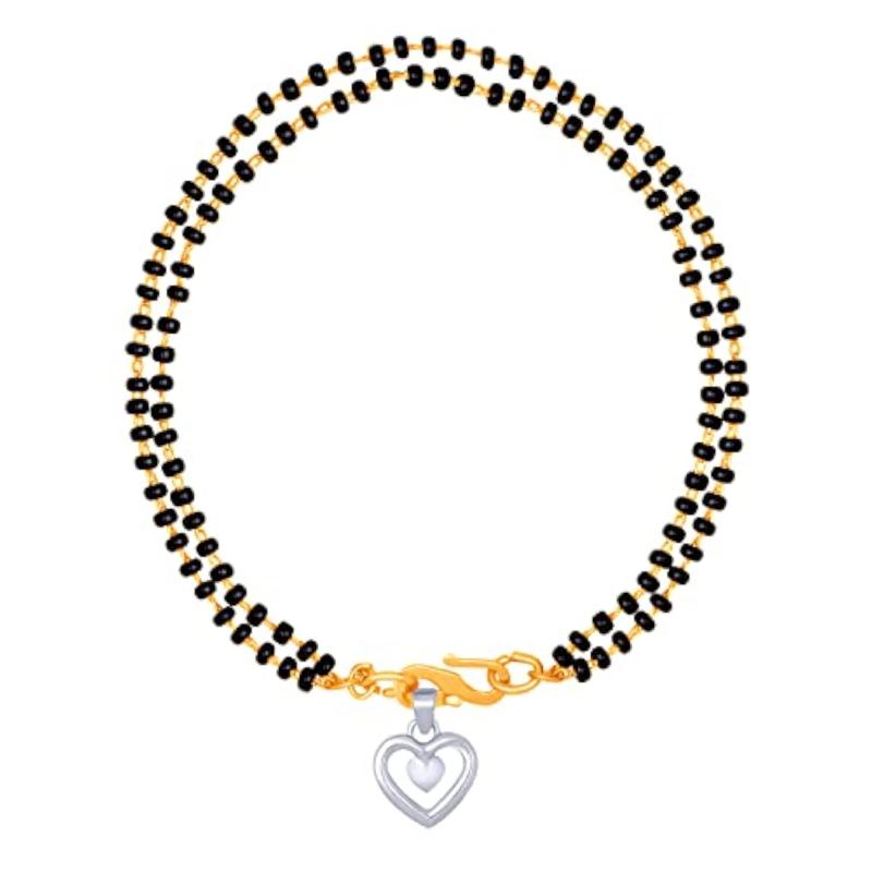 Dual Chain Heart Charm Mangalsutra Bracelet with Beads