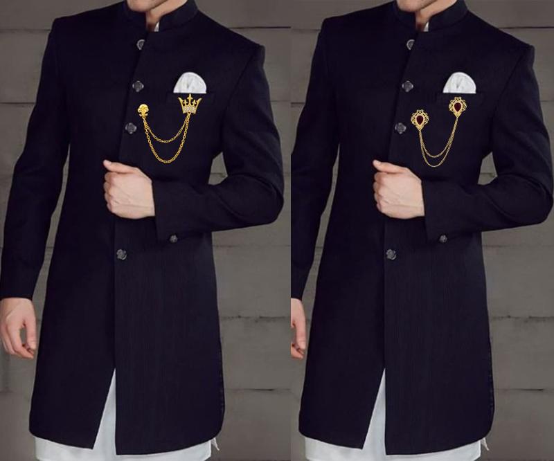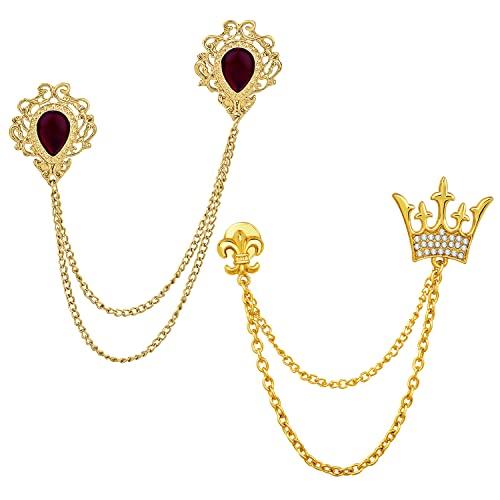 Elegant dual layer chain wedding brooch adorned with maroon crystals. Perfect for weddings and special occasions.