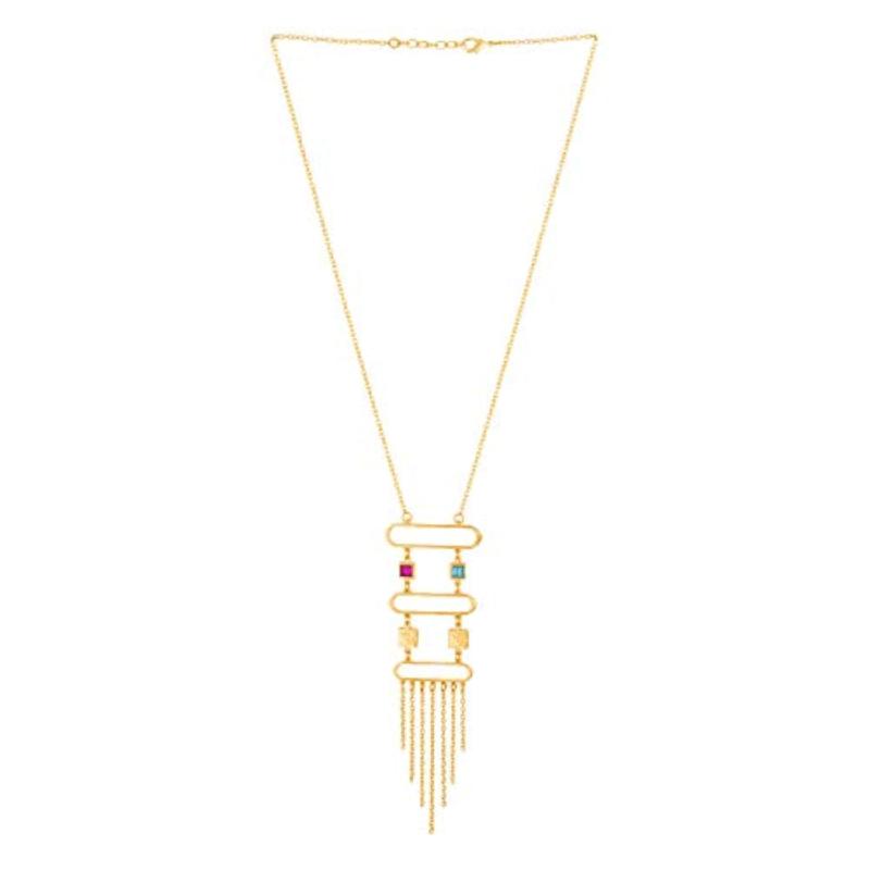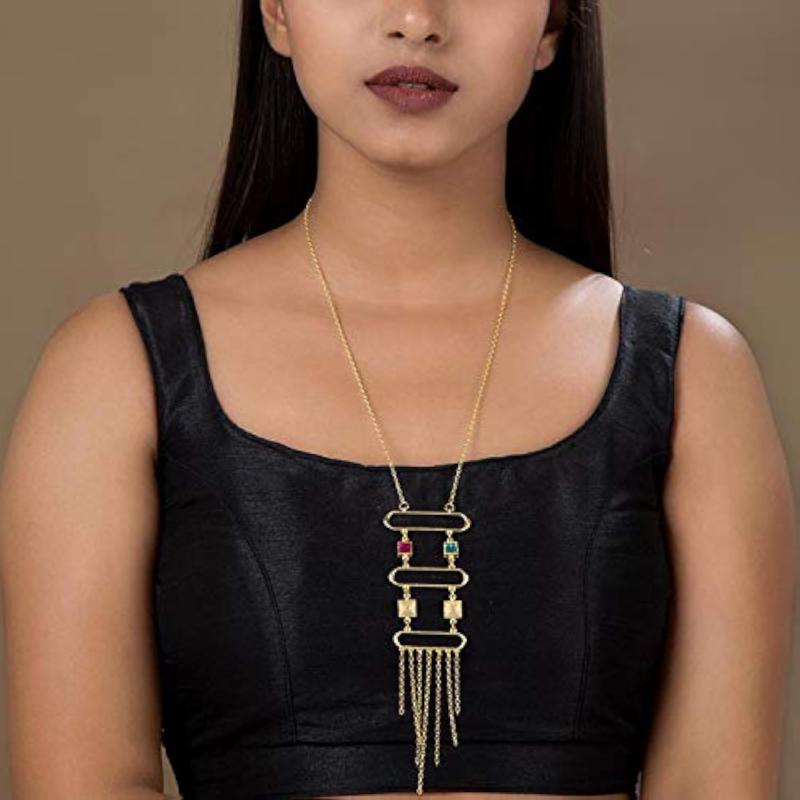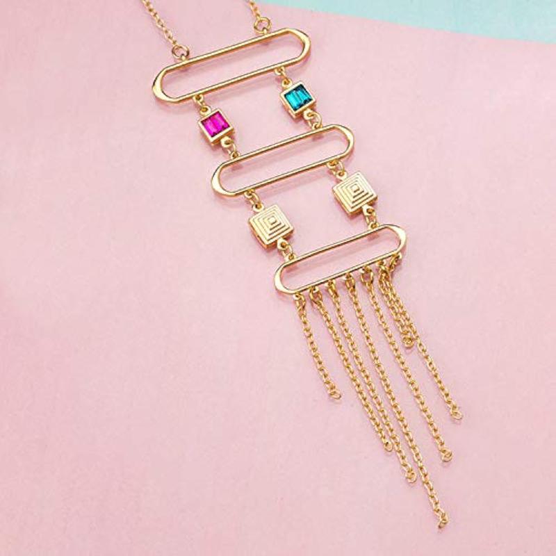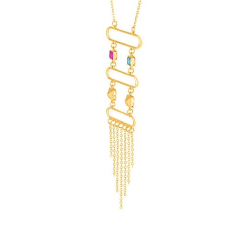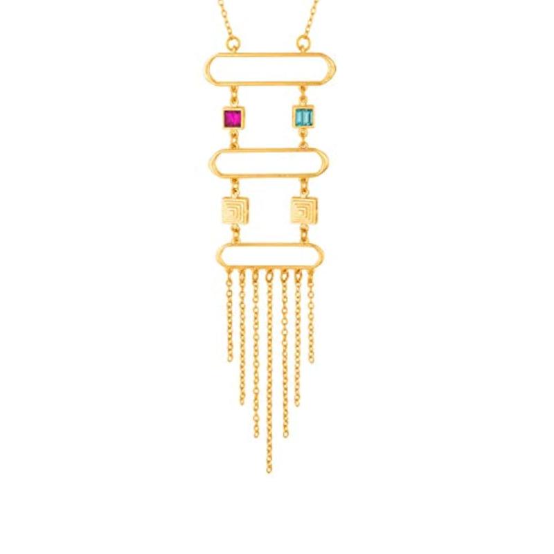 Elegant necklace with dual-stone chains in a geomatic design. Perfect for adding a touch of sophistication to any outfit.