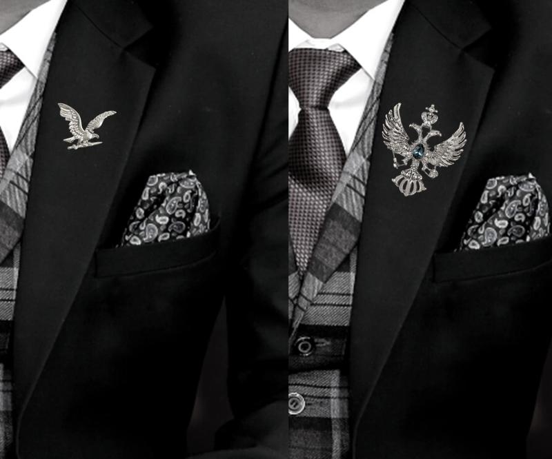 Elegant brooch/lapel pin featuring a flying eagle shape and shimmering crystals, perfect for weddings.