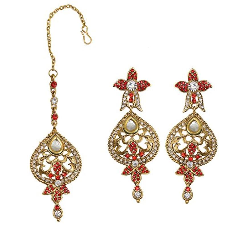 Complete your ethnic look with this stunning earring and maang tika set. Perfect for weddings, festivals, and special occasions.