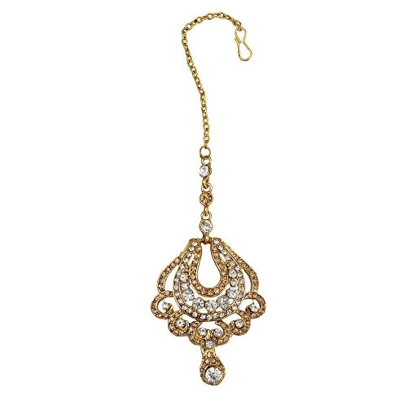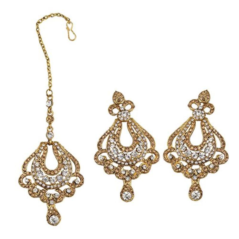Complete your ethnic look with this stunning earring and maang tika set. Perfect for weddings and special occasions.