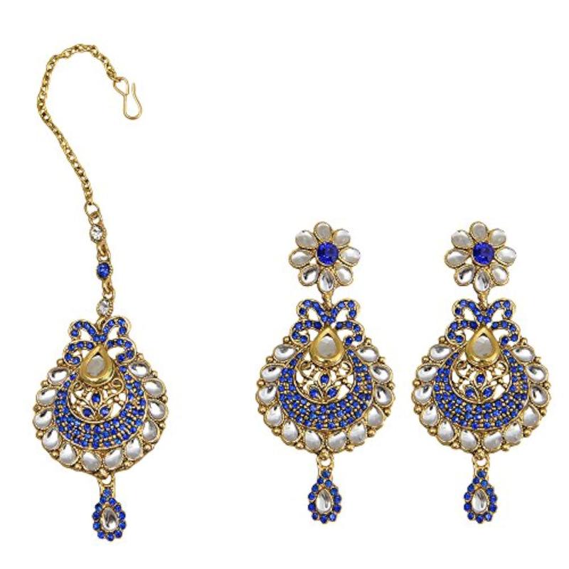 Add a touch of glamour to your ethnic look with this beautiful earring maang tika set. Perfect for weddings, parties, and special occasions.