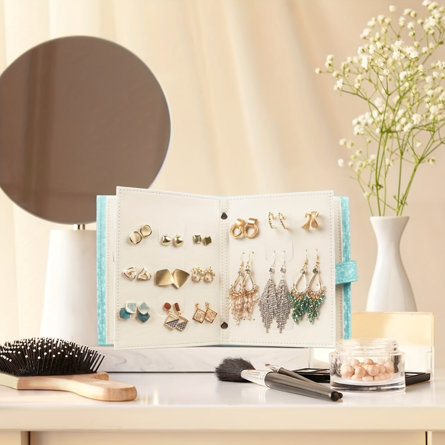 This earring organizer book is perfect for travel and storage. It can hold up to 42 pairs of earrings securely.