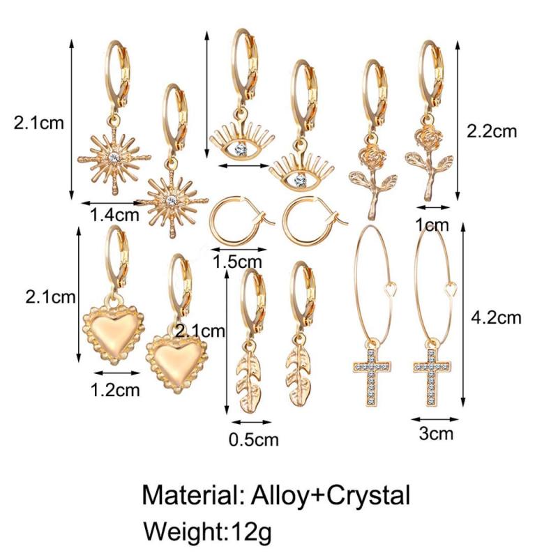 This jewellery set includes 10 pairs of assorted stud earrings in various designs and colors, a perfect addition to your collection.