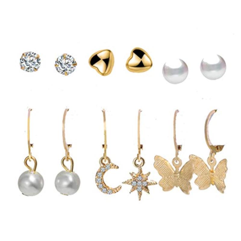 Enhance your look with this set of 5 stylish and elegant earrings. Perfect for daily wear or special occasions.