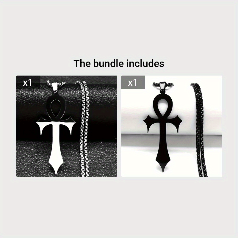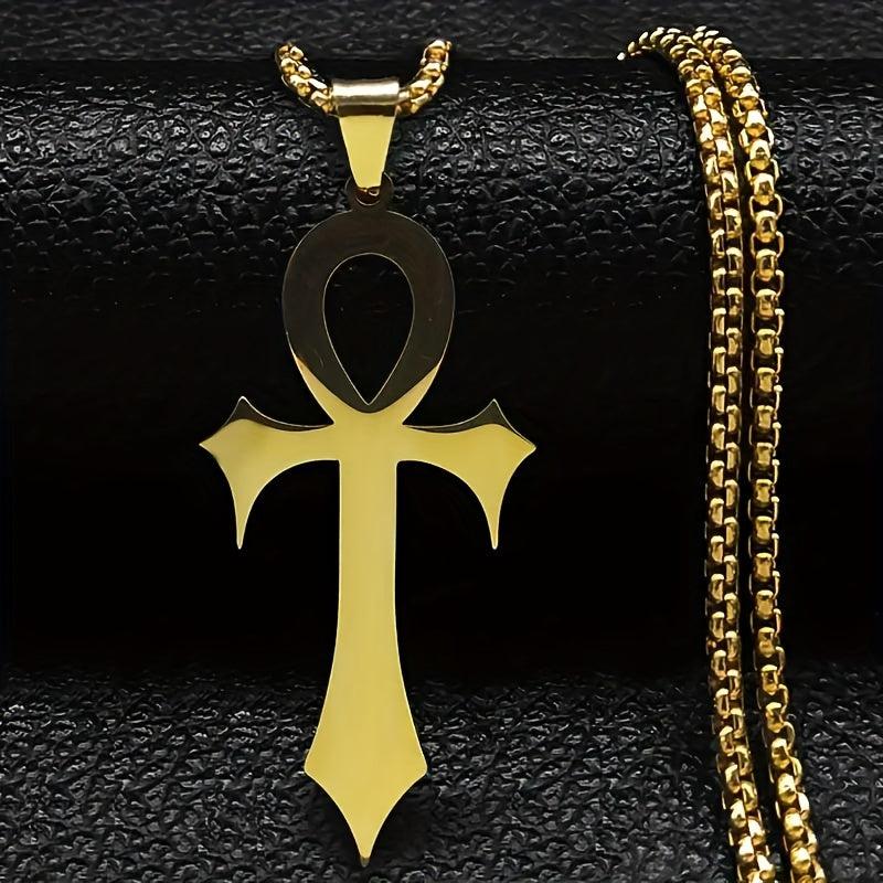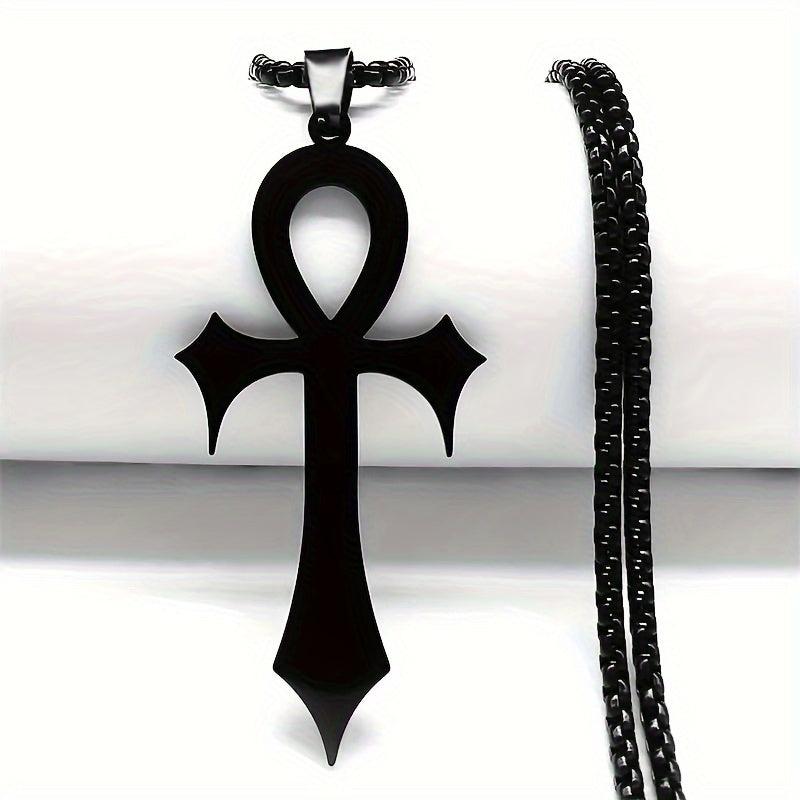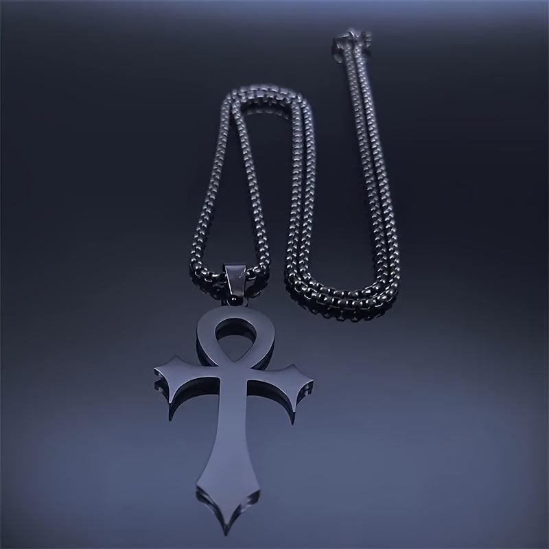 This Egyptian Ankh Cross necklace features a stainless steel pendant with religious gothic design. It symbolizes the key of life.