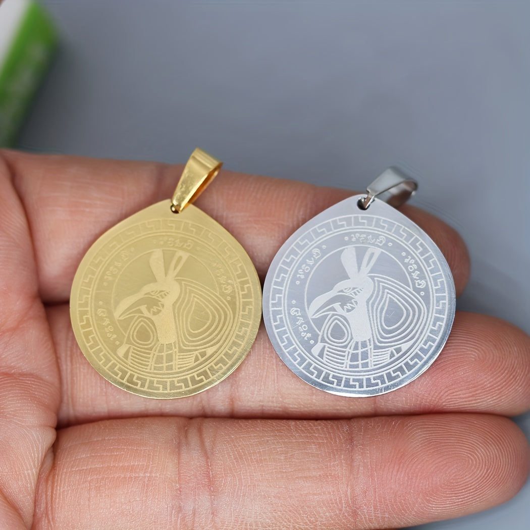 This stainless steel charm features an Egyptian design, perfect for necklaces, bracelets, and various jewelry crafts.